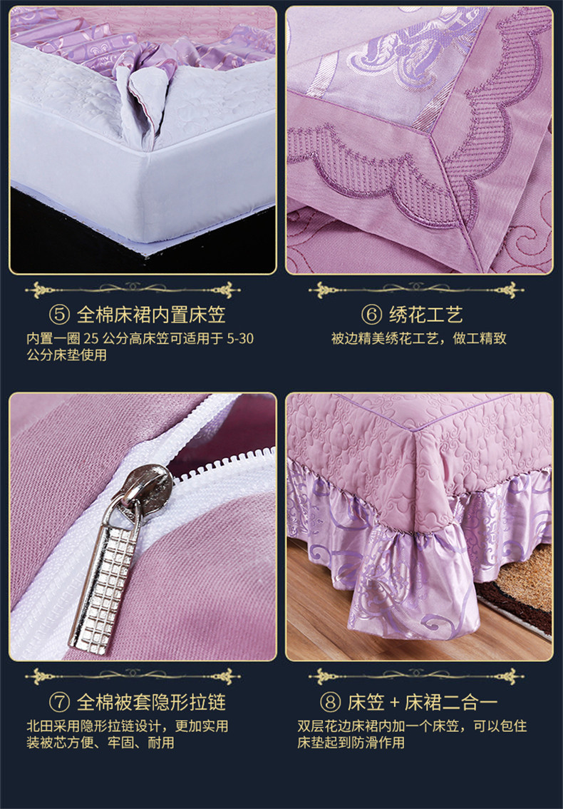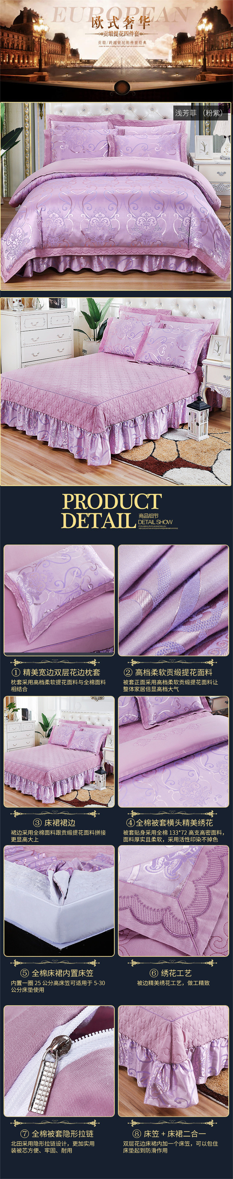 商品名称:福丽莱家纺 2023新款贡缎提花床裙四件套(夹棉)浅芳菲-粉紫