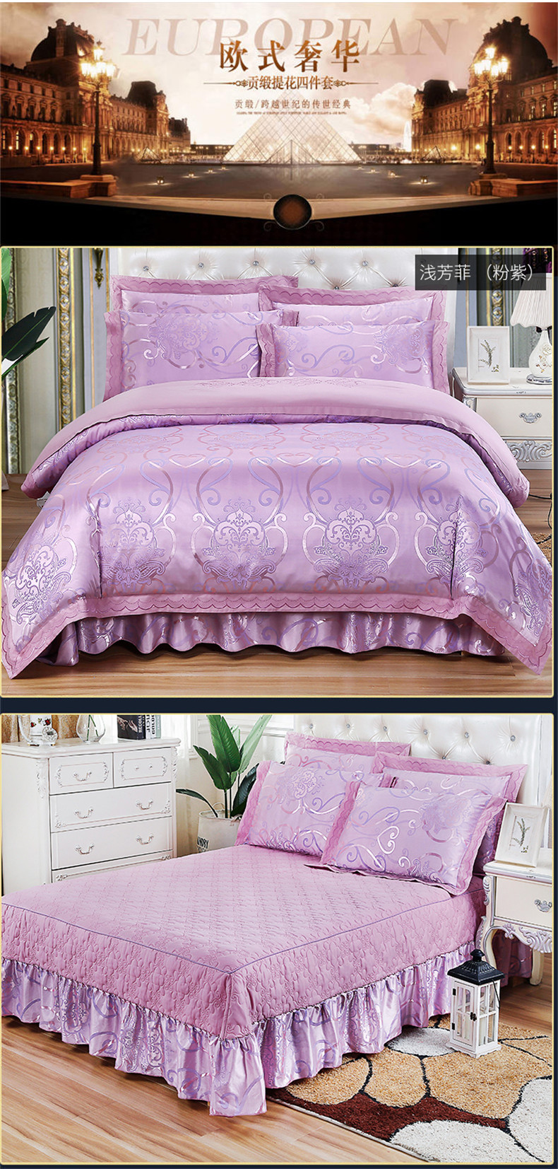 福丽莱家纺 2023新款贡缎提花床裙四件套(夹棉)浅芳菲-粉紫