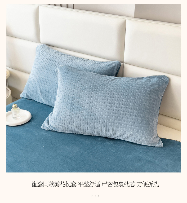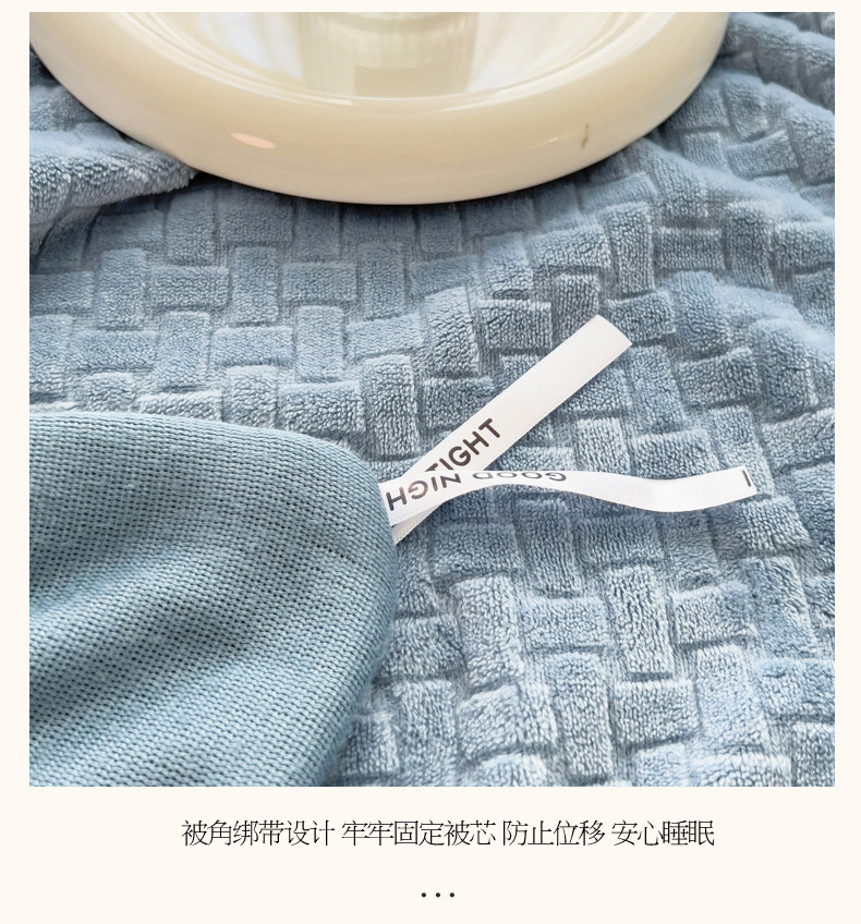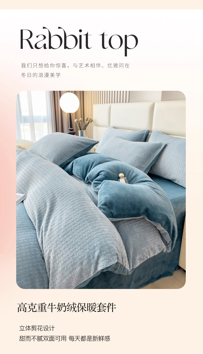 商品名称:印季 2024新款立体剪花牛奶绒保暖四件套-十字结 蓝灰