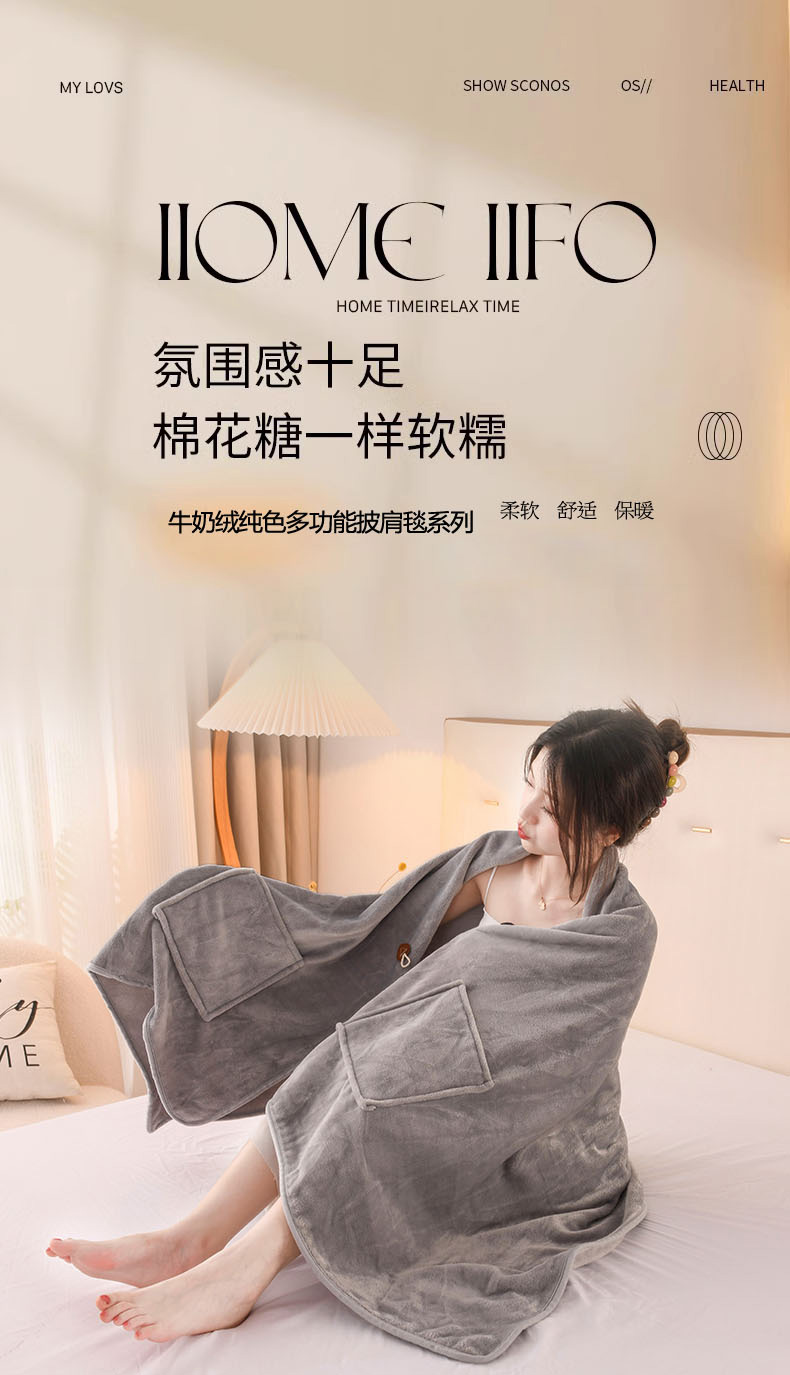 印季家纺 2024新款牛奶绒纯色披肩毯 浅灰