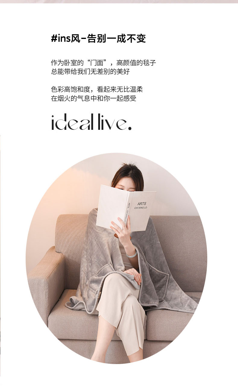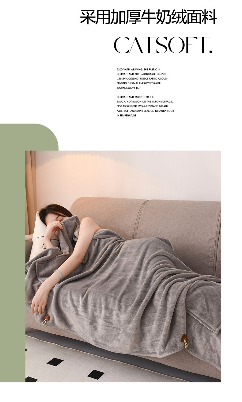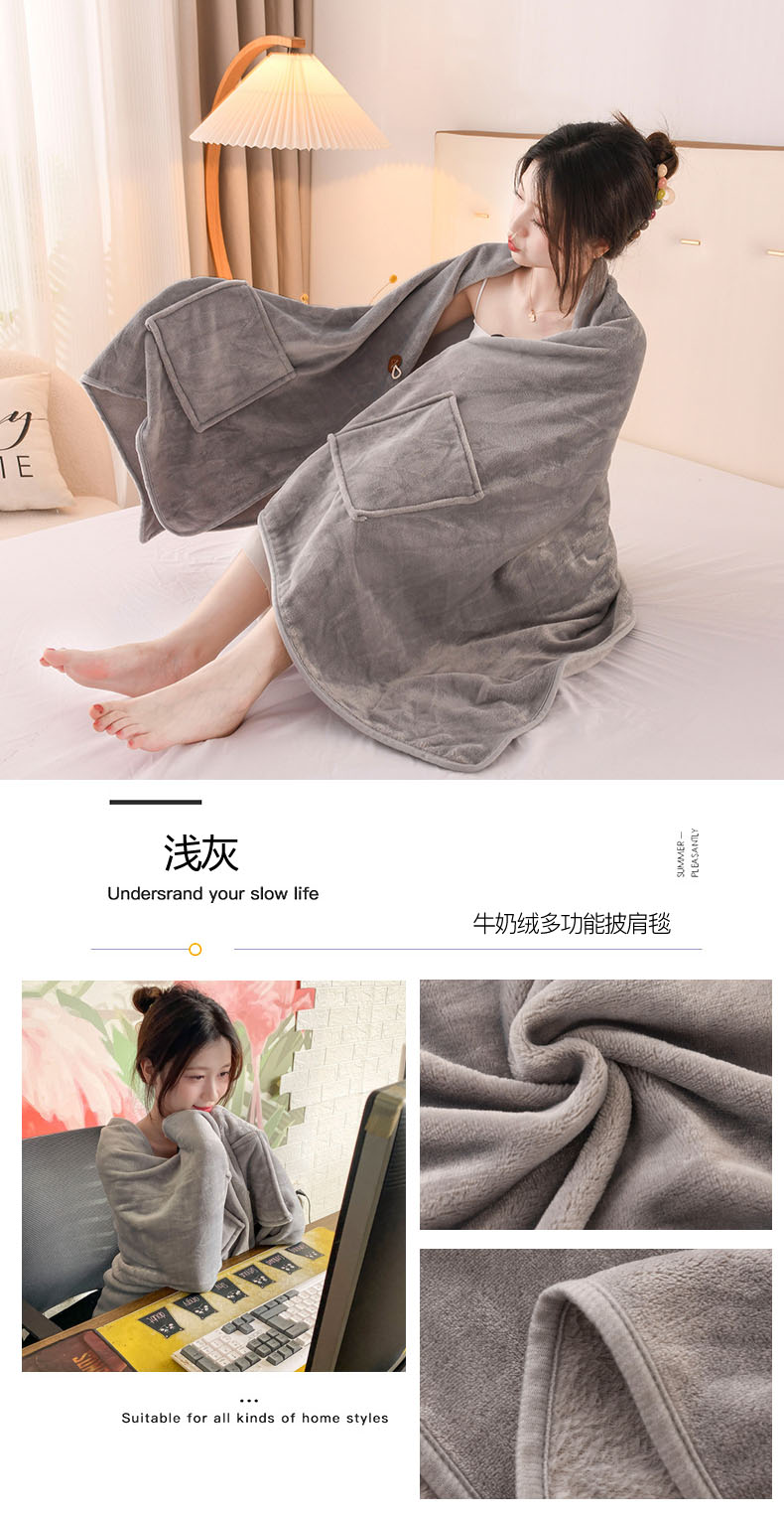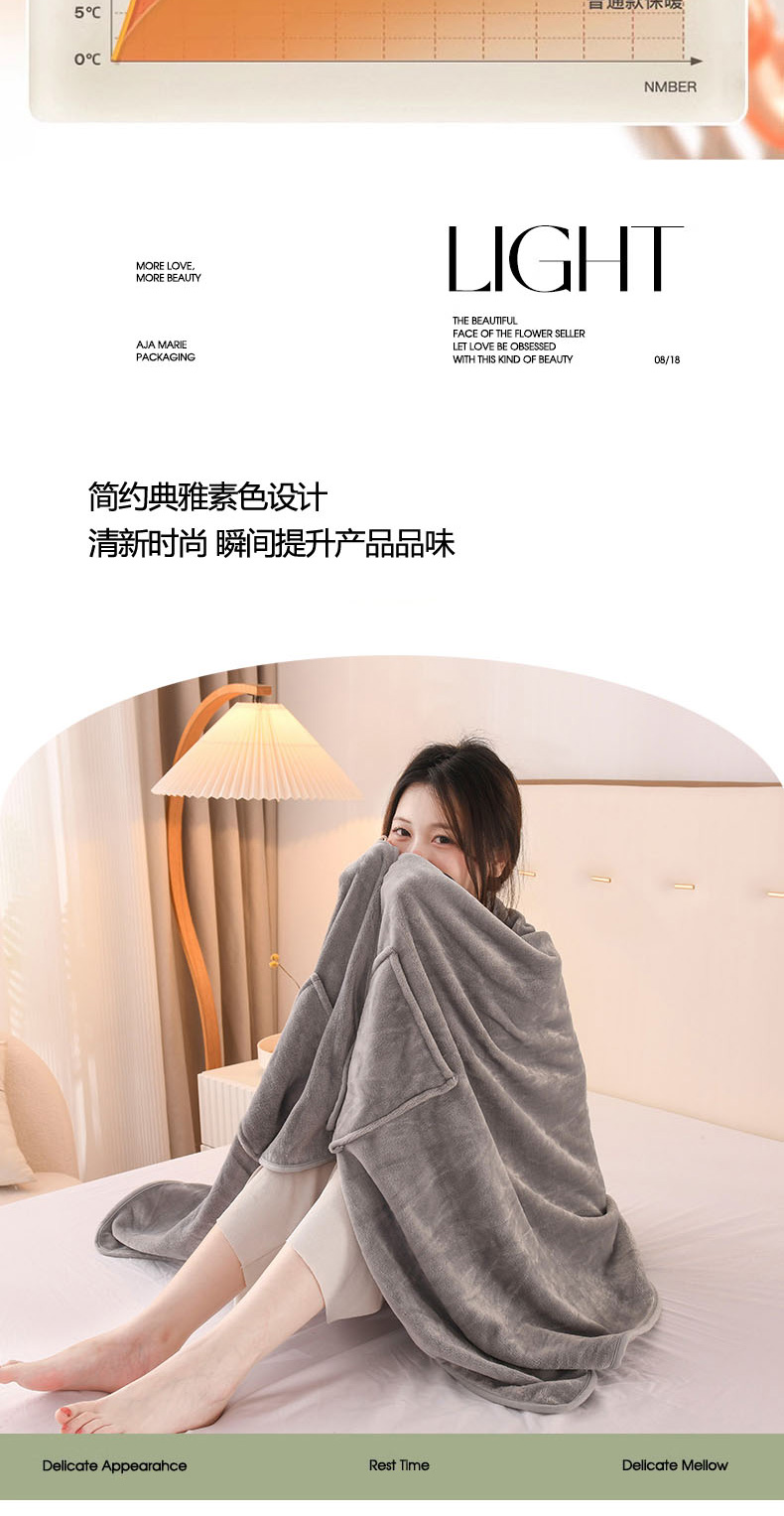 商品名称:印季家纺 2024新款牛奶绒纯色披肩毯 浅灰