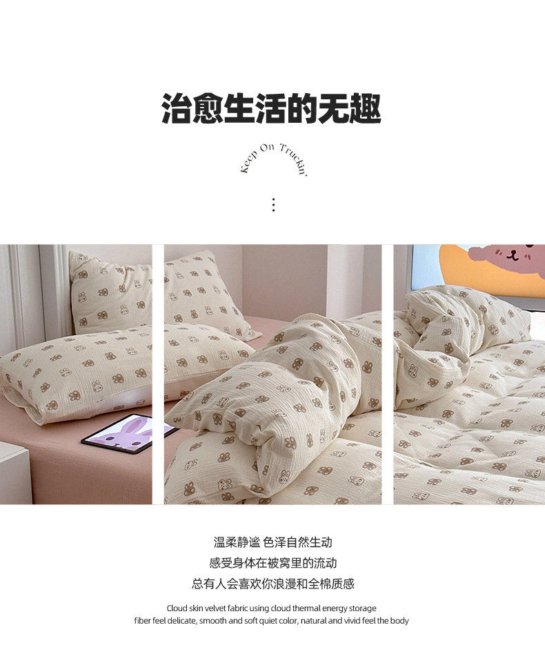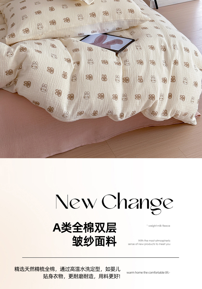 (总)山舍家居 2022新款双层纱布四件套,莱茵蓝,清绿,透白,雅灰,芥黄,裸粉,茶卡,甜白,星蓝,摩卡