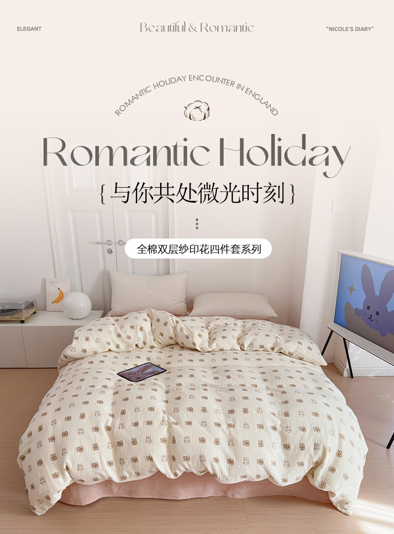 (总)山舍家居 2024新款全棉双层纱印花系列四件套