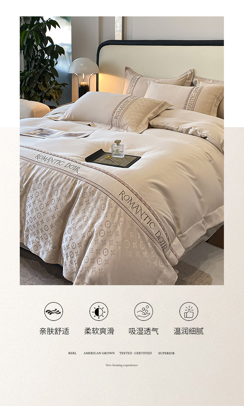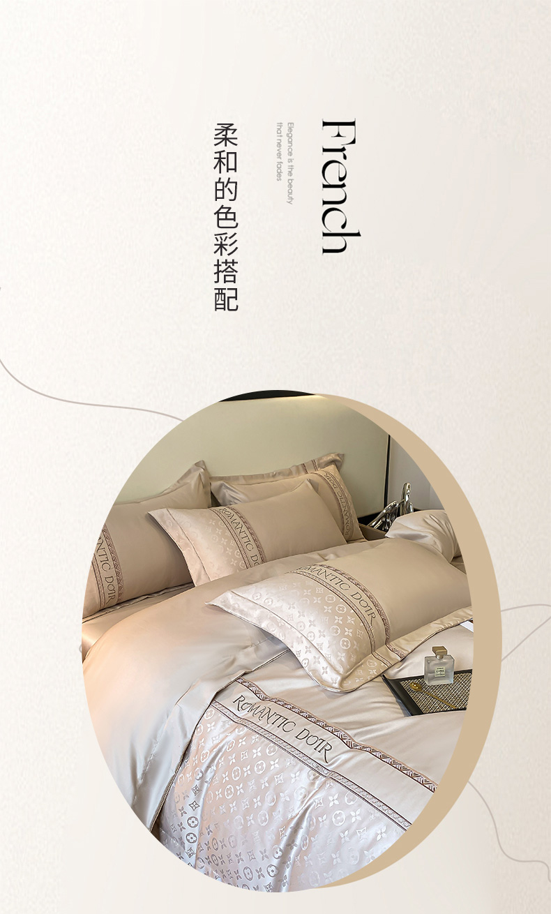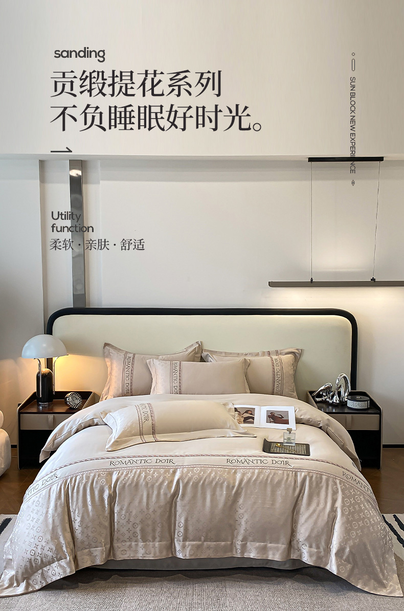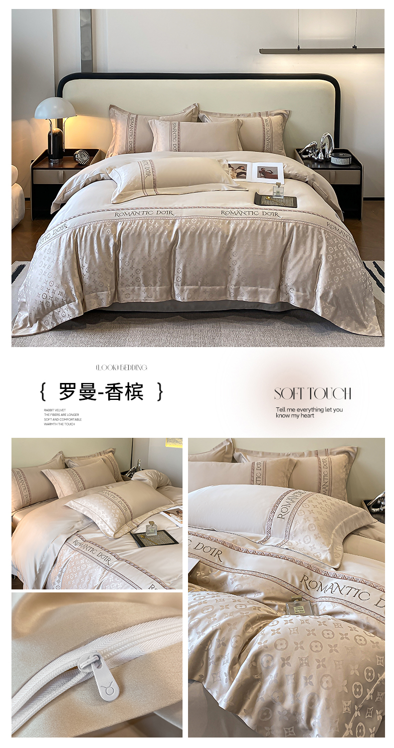 金牛座 2025新款贡缎提花精工刺绣四件套-罗曼系列 罗曼-香槟