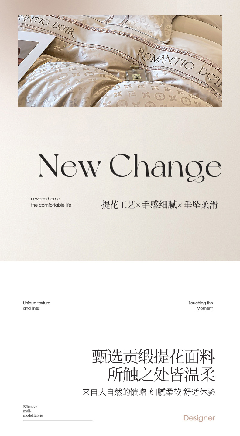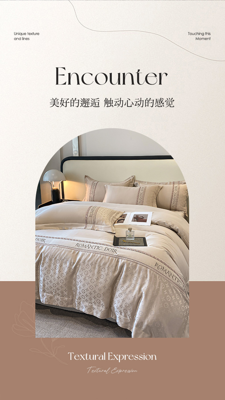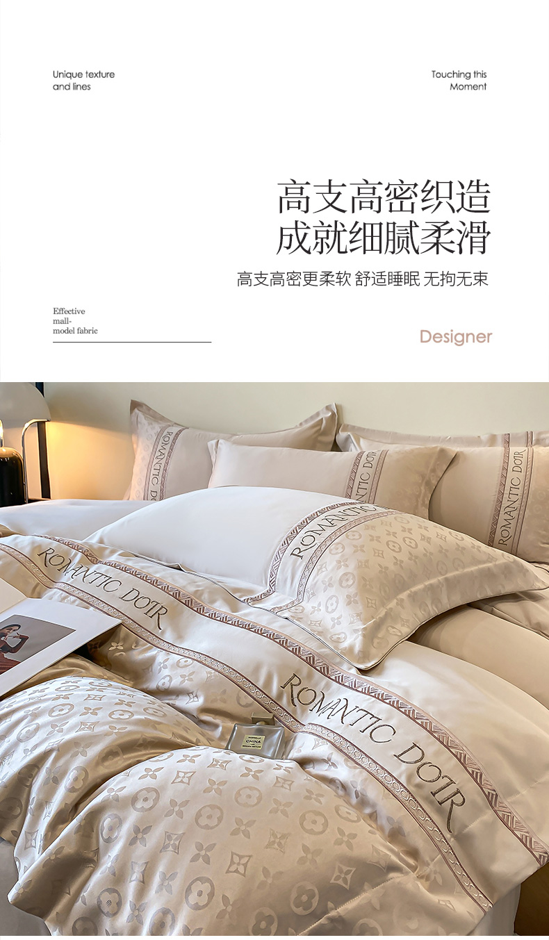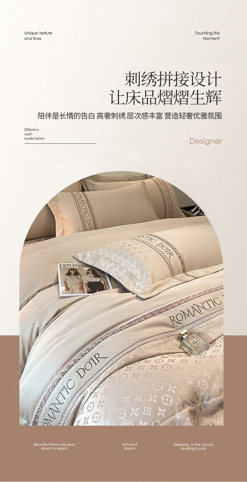 金牛座 2025新款贡缎提花精工刺绣四件套-罗曼系列 罗曼-香槟