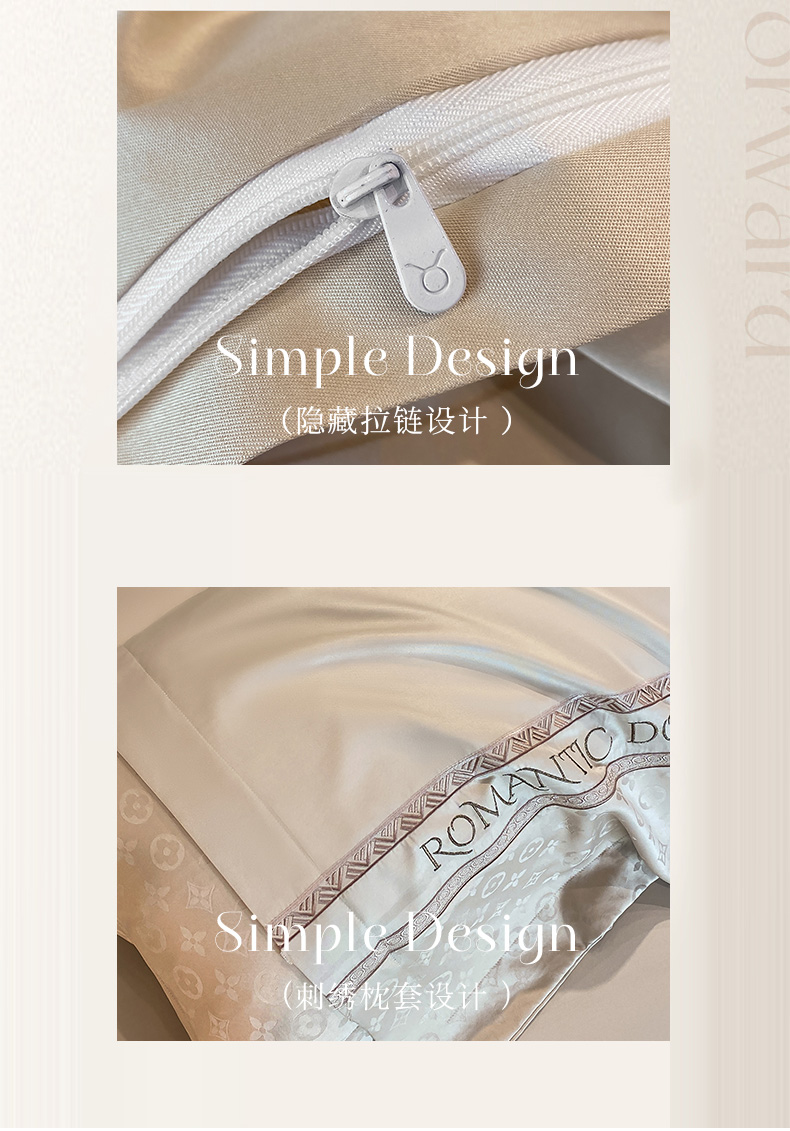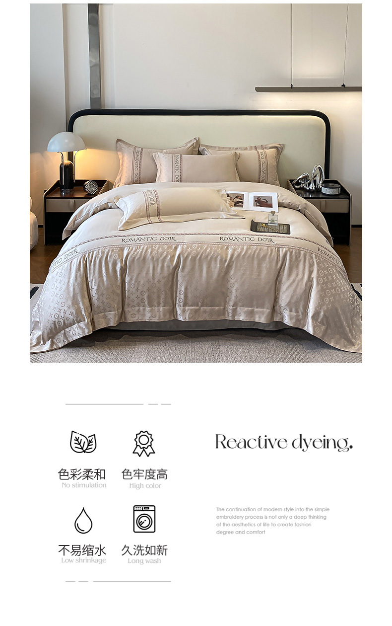 商品名称:金牛座 2025新款贡缎提花精工刺绣四件套-罗曼系列 罗曼-香槟