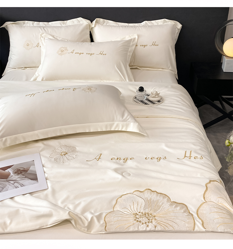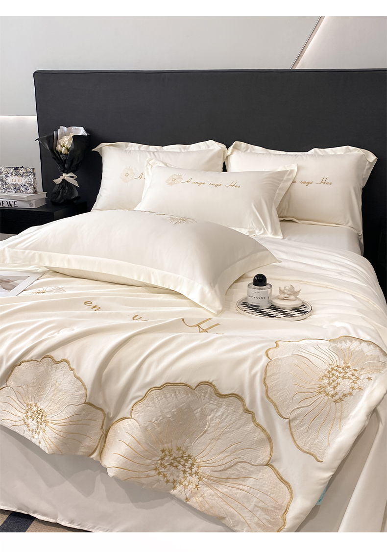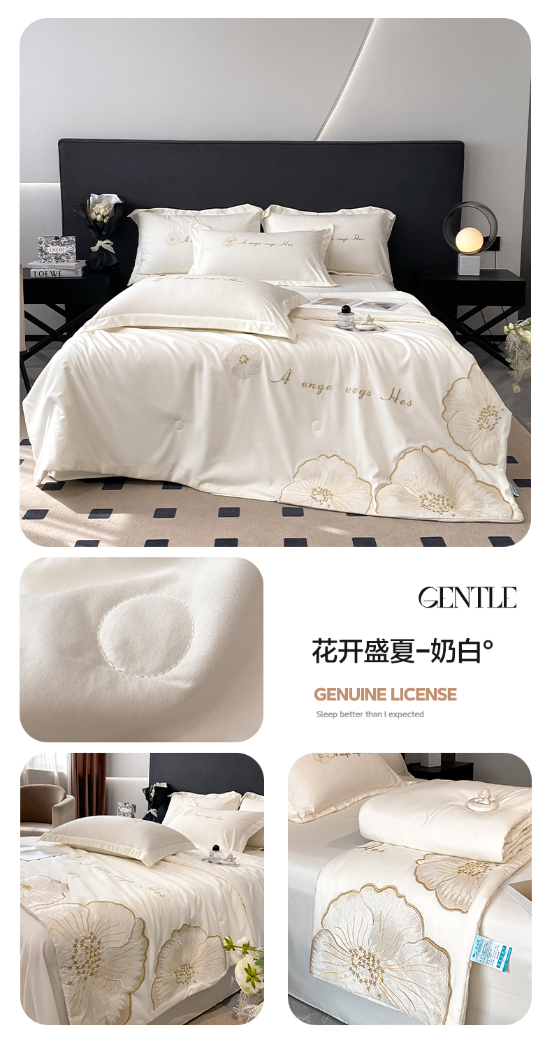 商品名称:你好美丽 2025新款水洗磨毛刺绣夏被四件套-花开盛夏 花开盛夏-奶白