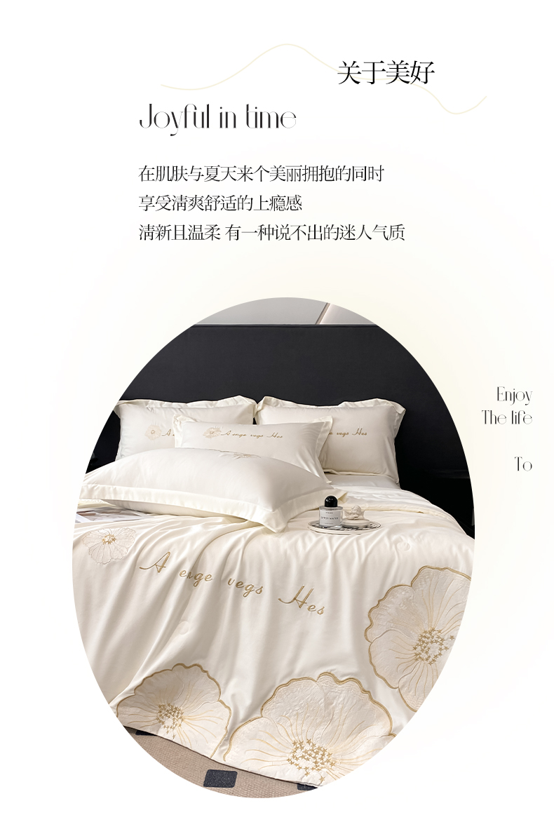 你好美丽 2025新款水洗磨毛刺绣夏被四件套-花开盛夏 花开盛夏-奶白