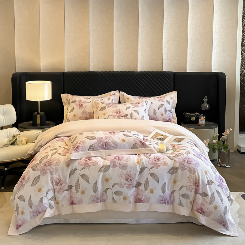 栩裕纺织 2025新款雪芙棉超柔天丝棉磨毛四件套 夏瑾-粉