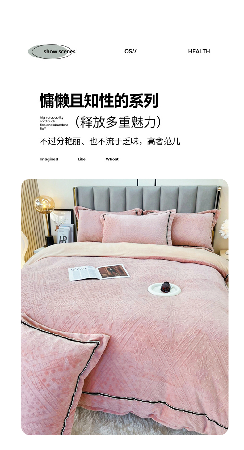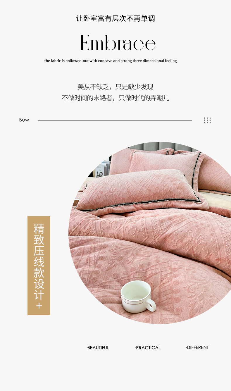(总)逸林家纺《原希尔顿逸林》 2024新款牛奶绒雕花压线款四件套,欧式-豆沙,欧式-繁星蓝,欧式-柯南灰,欧式-奶油白,欧式-青梅绿,山茶花-豆沙,树叶-蓝灰,树叶-雅士灰