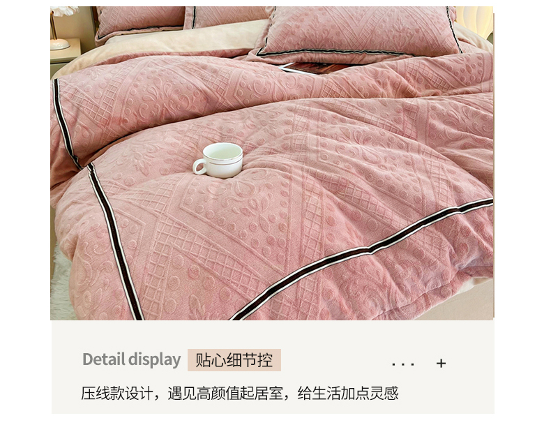 商品名称:逸林家纺《原希尔顿逸林》 2024新款牛奶绒雕花压线款四件套 欧式-豆沙