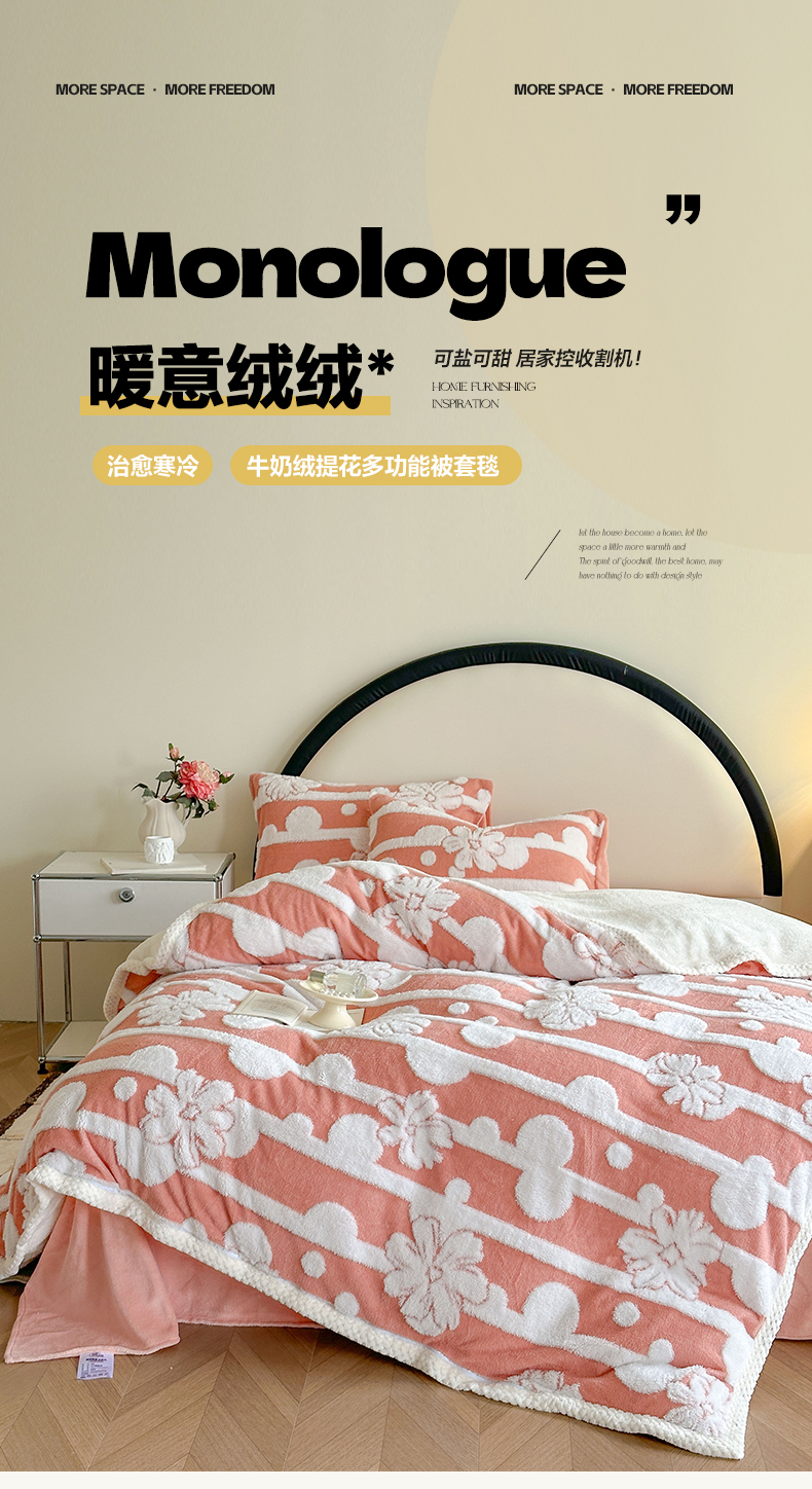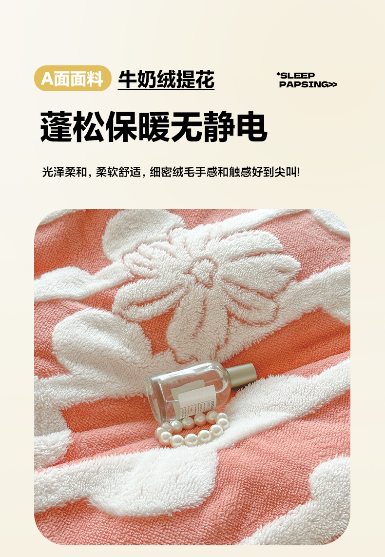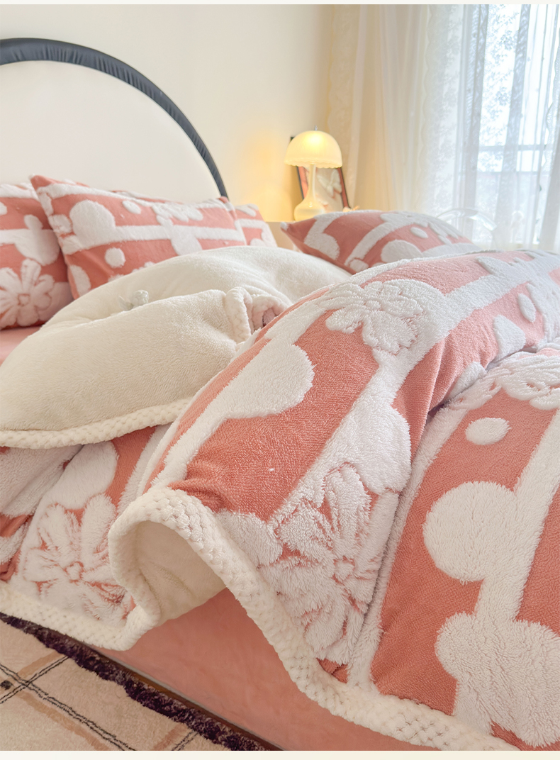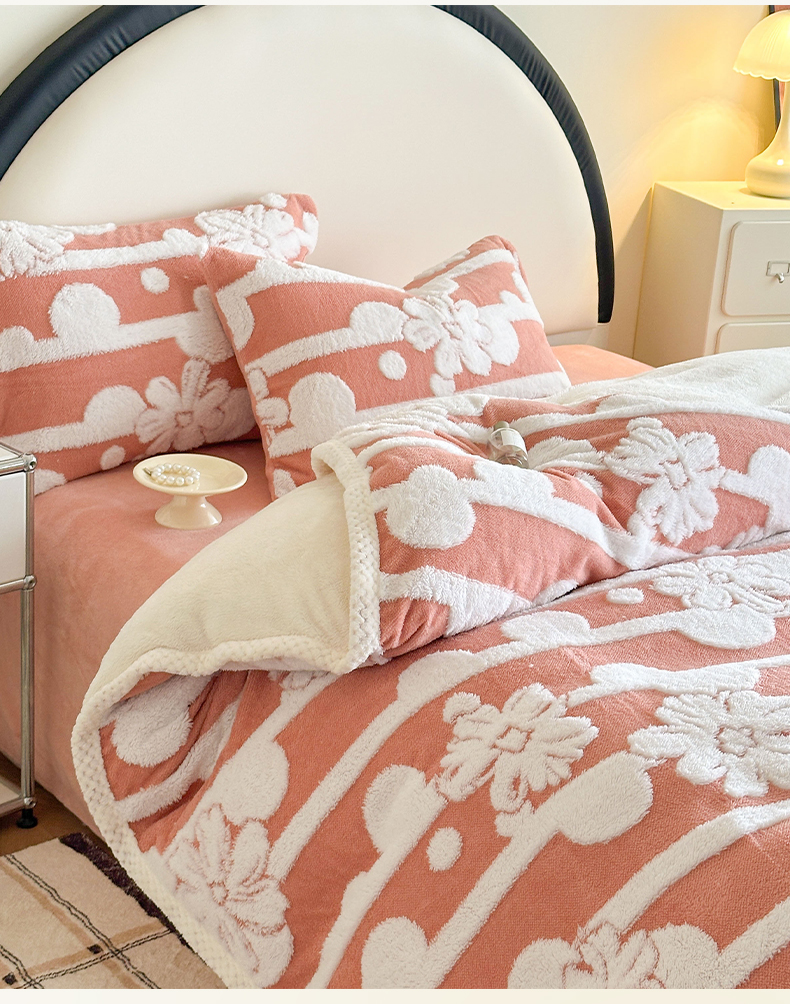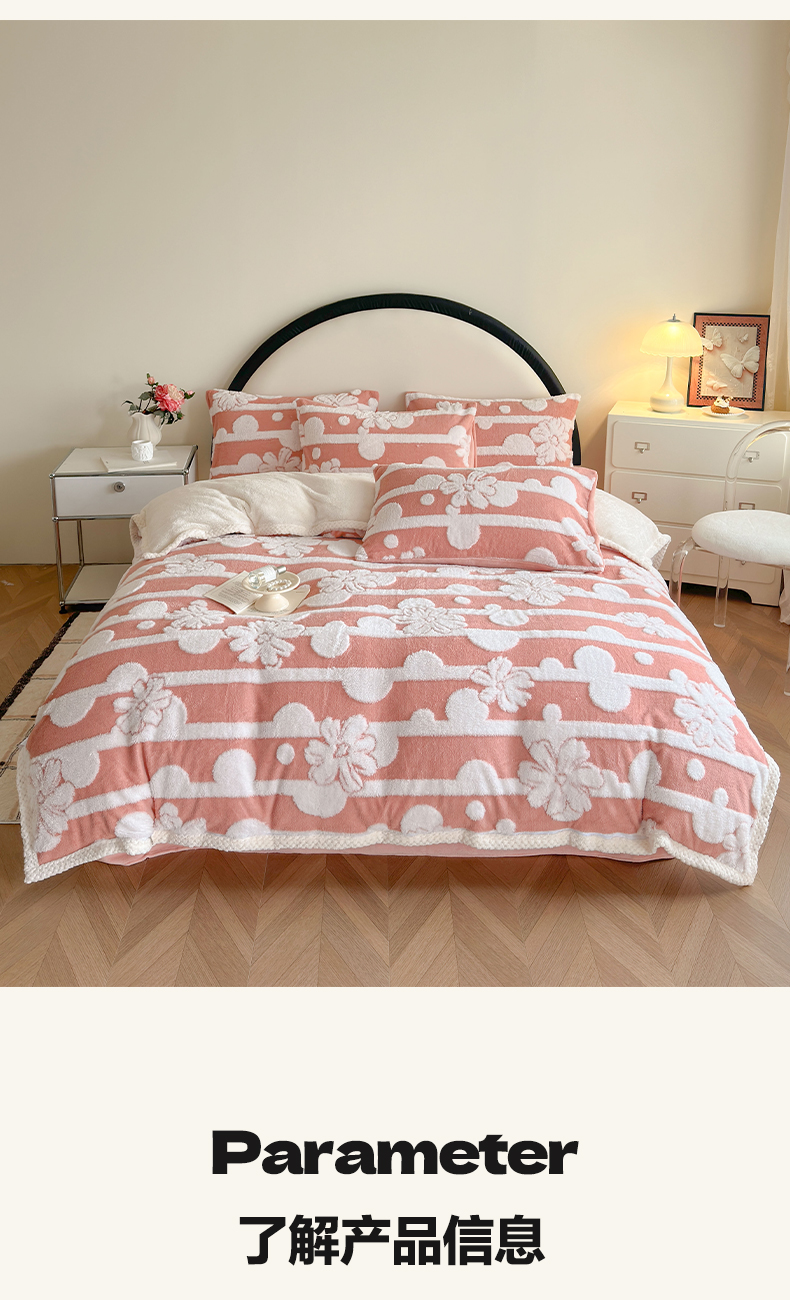 当前位置: 91家纺网 > 商品网购 > 床品套件 > 四件套 > 牛奶绒四件套 > 莱登卡奴 2024新款牛奶绒阳离子提花北极绒被套毯-包边款系列 包边款竖条花百香粉