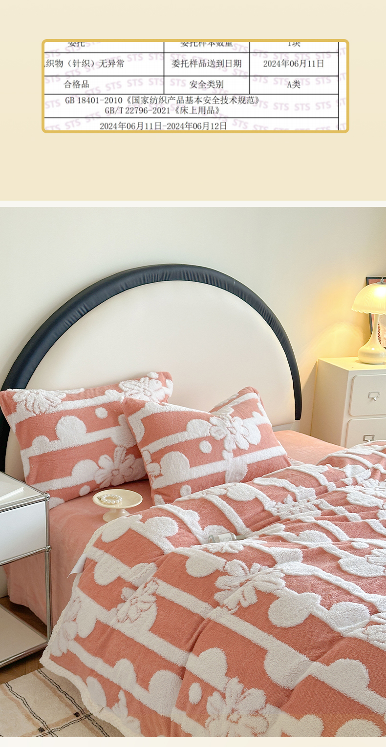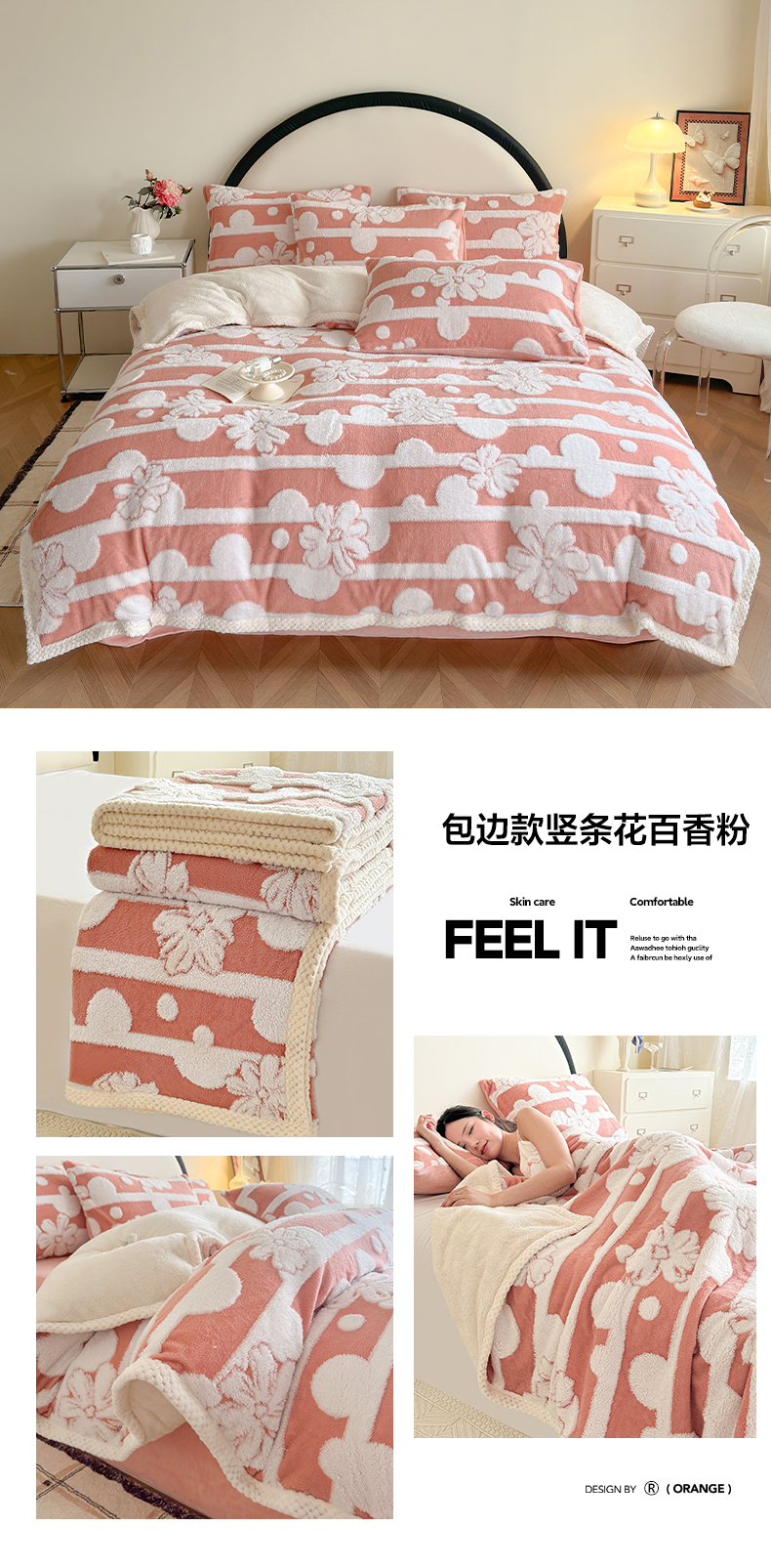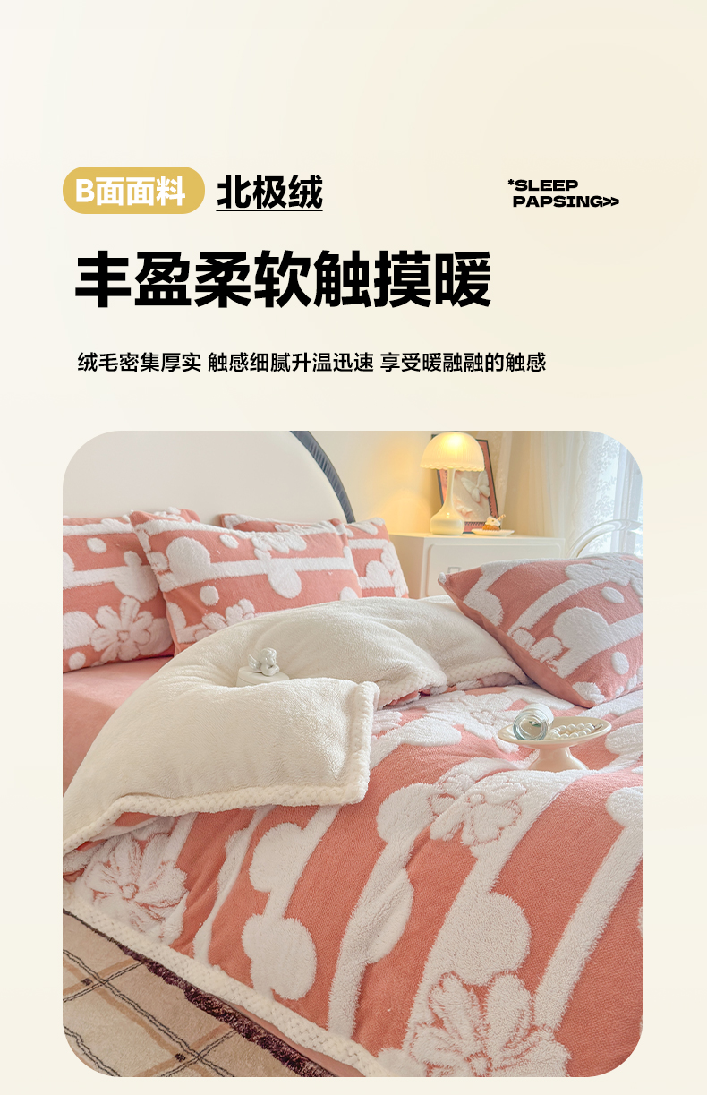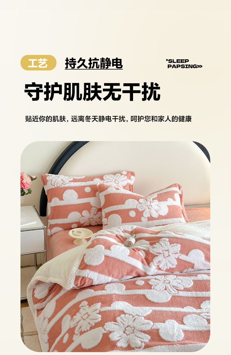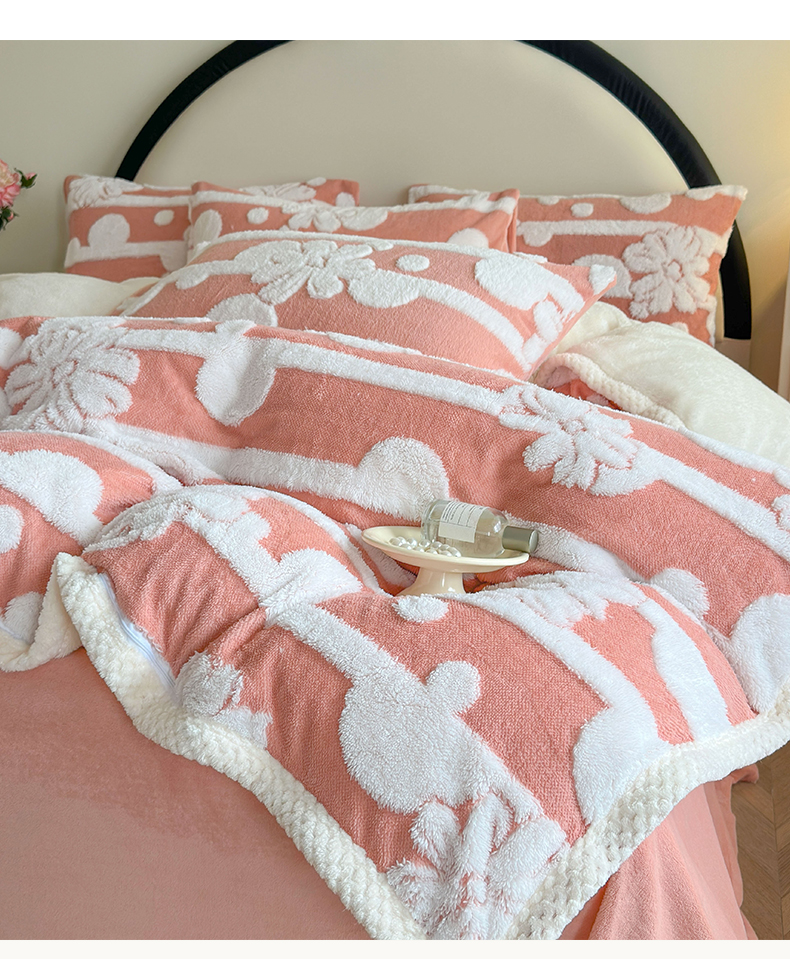 当前位置: 91家纺网 > 商品网购 > 床品套件 > 四件套 > 牛奶绒四件套 > 莱登卡奴 2024新款牛奶绒阳离子提花北极绒被套毯-包边款系列 包边款竖条花百香粉