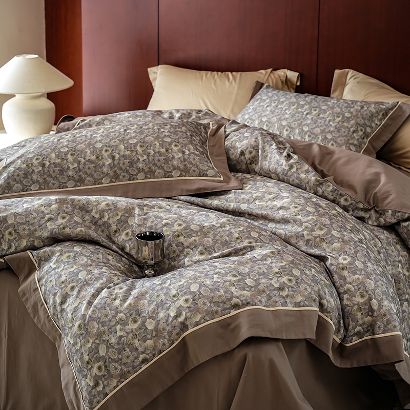 商品名称:2024新款天丝棉磨毛宽边+嵌条印花四件套 流云-灰