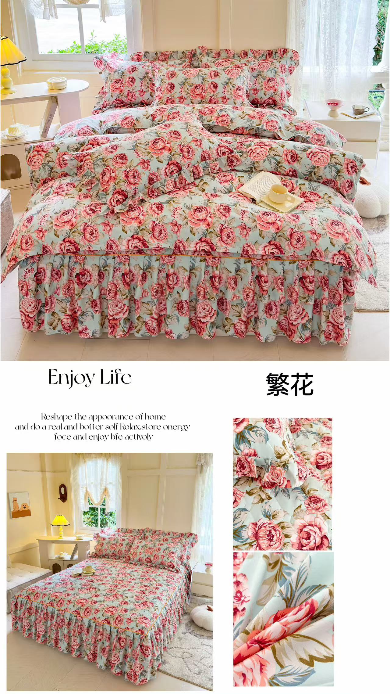 (总)雨田家纺 2024新款亲肤棉印花床裙四件套,出水芙蓉-兰,出水芙蓉-棕,初遇见,花容月貌-灰,如花似锦-绿,春暖花开,梦露花园,香草