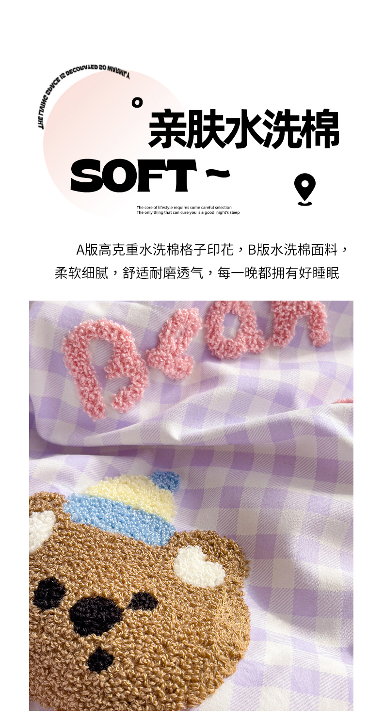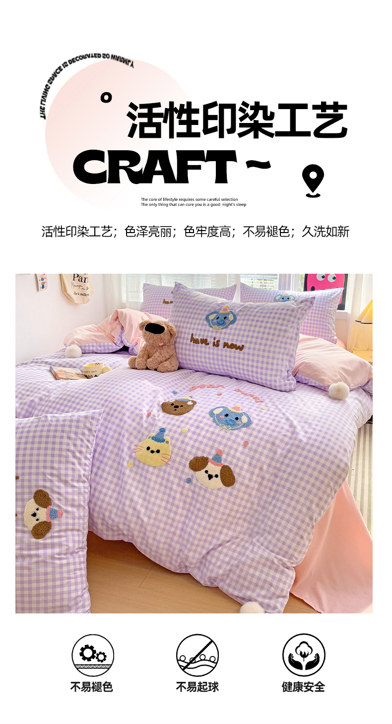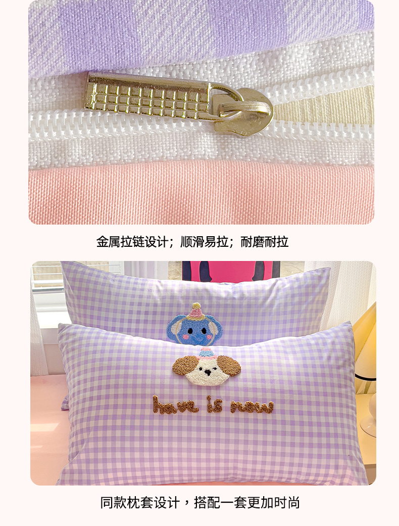 商品名称:你好美丽 2025新款水洗棉小象乐园毛巾绣格子工艺款吊球毛巾绣四件套 小象乐园-紫