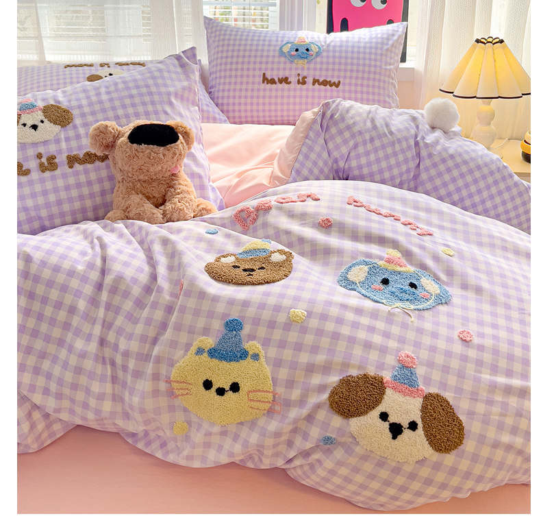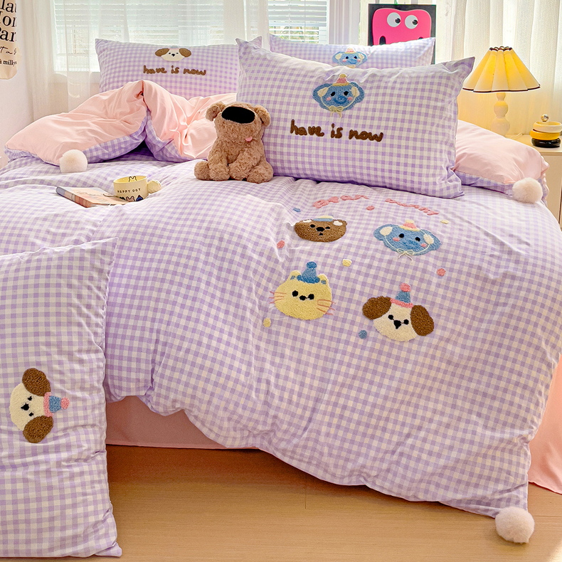 你好美丽 2025新款水洗棉小象乐园毛巾绣格子工艺款吊球毛巾绣四件套 小象乐园-紫