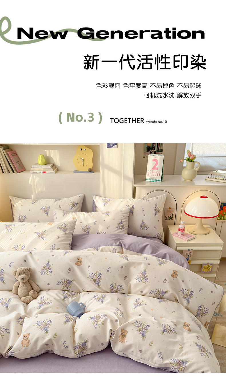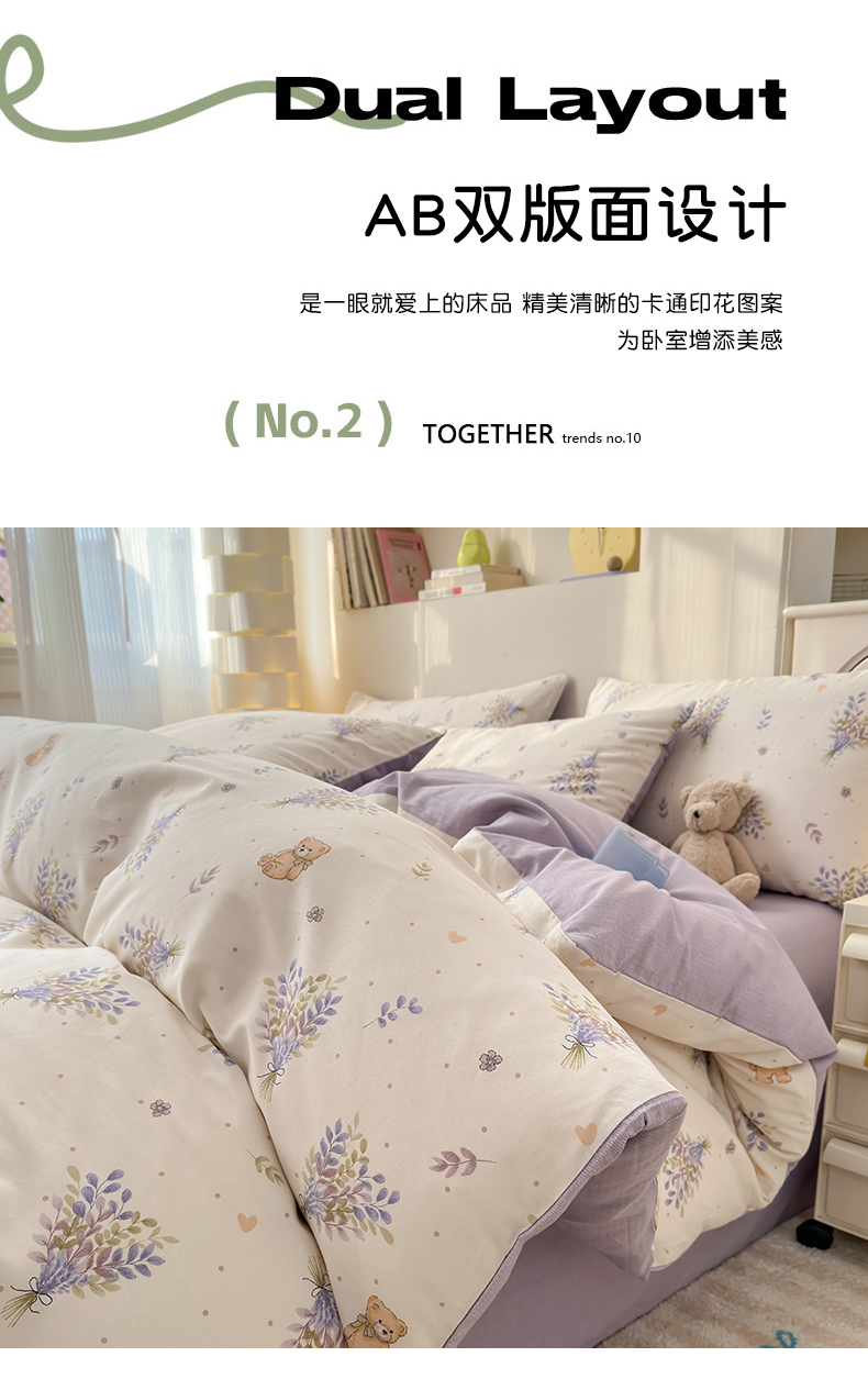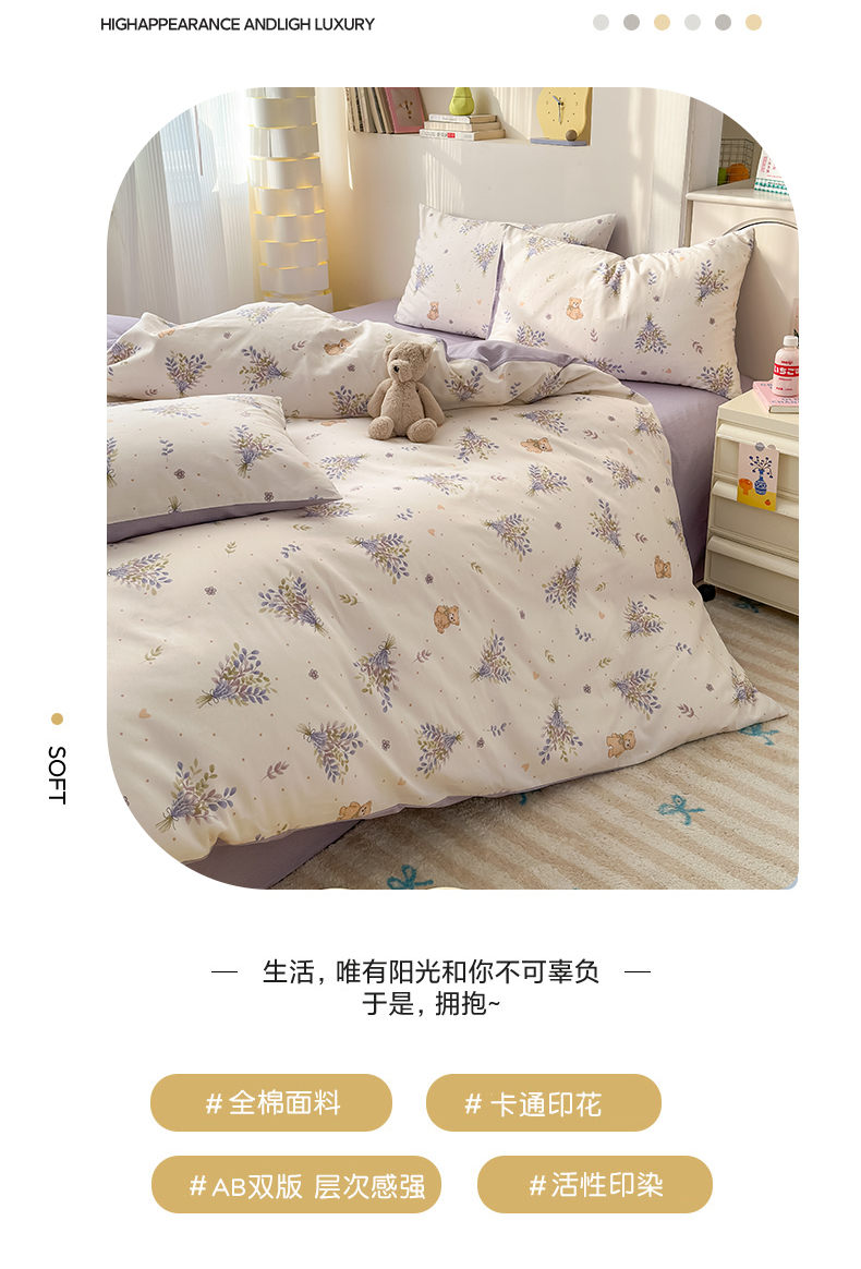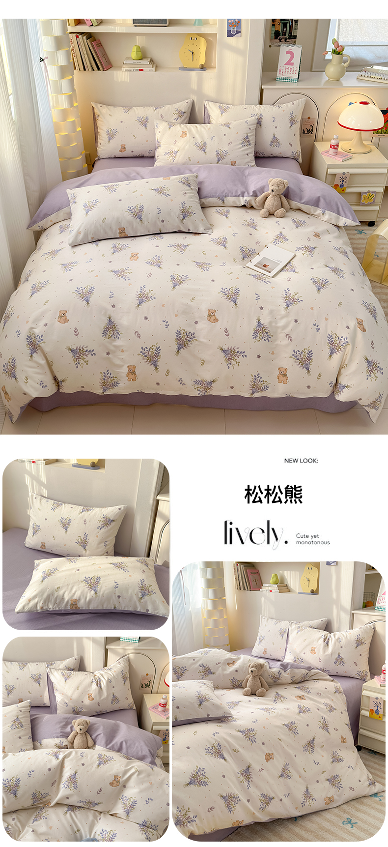 商品名称:清雅福 2025新款13070全棉小清新四件套 松松熊