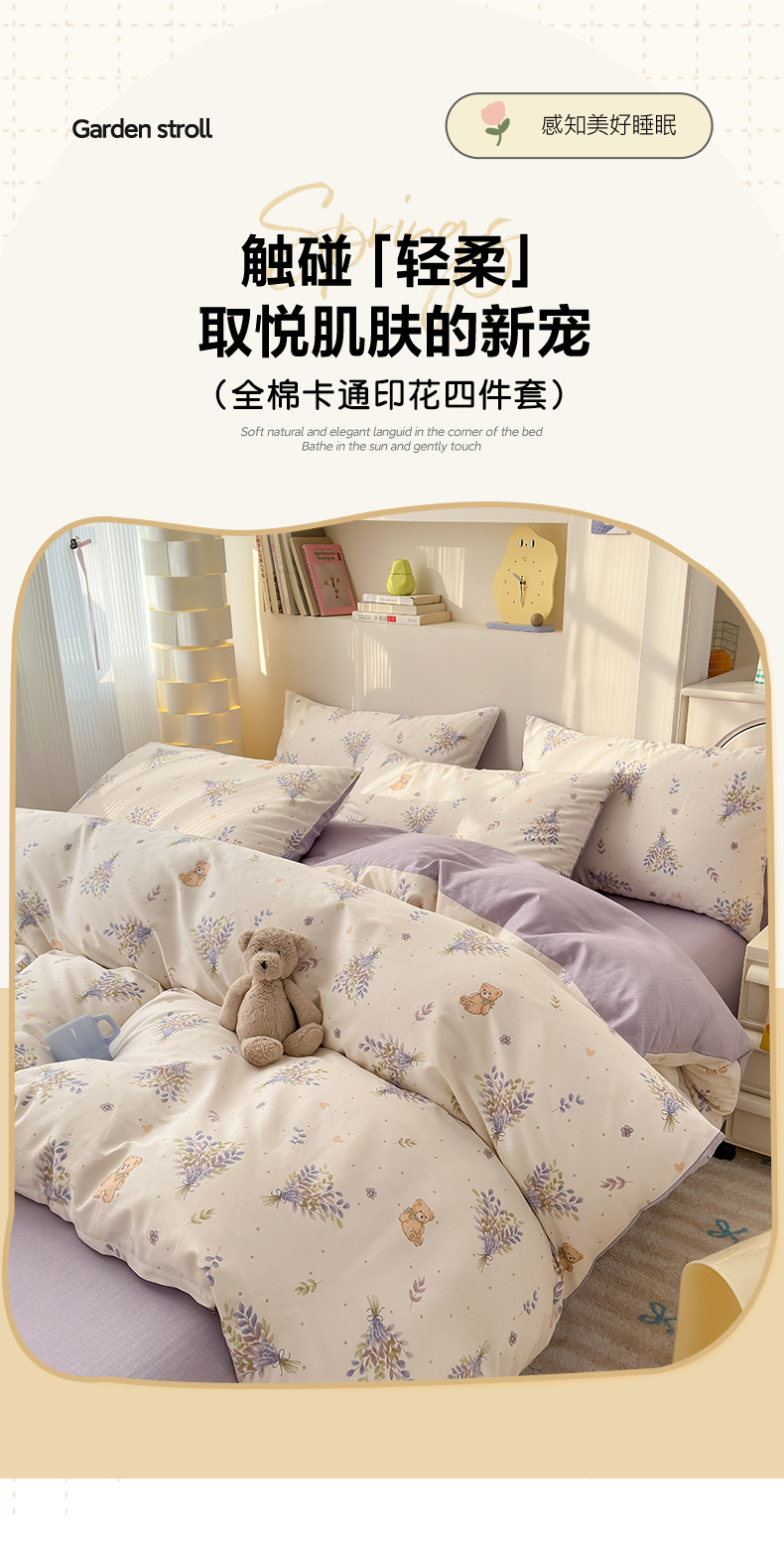 清雅福 2025新款13070全棉小清新四件套 松松熊