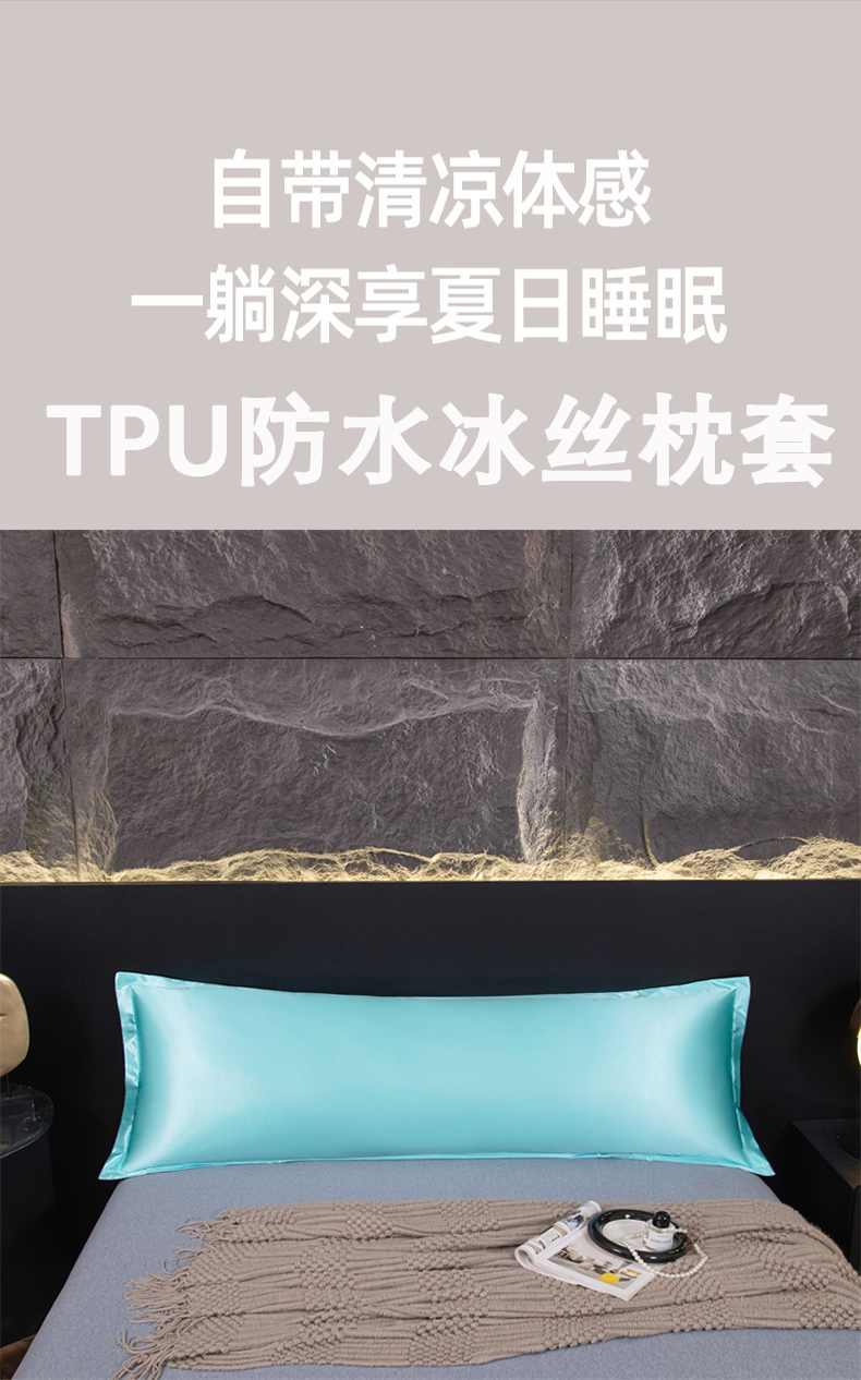 商品名称:圣比熊2025新款防水冰丝纯色双人枕套情侣1.8m枕芯套内胆套 防水款-水蓝色