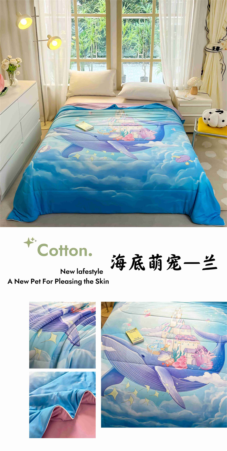 商品名称:大世界被王 2025年新款大版印花卡通凉感丝夏被 海底萌宠-兰