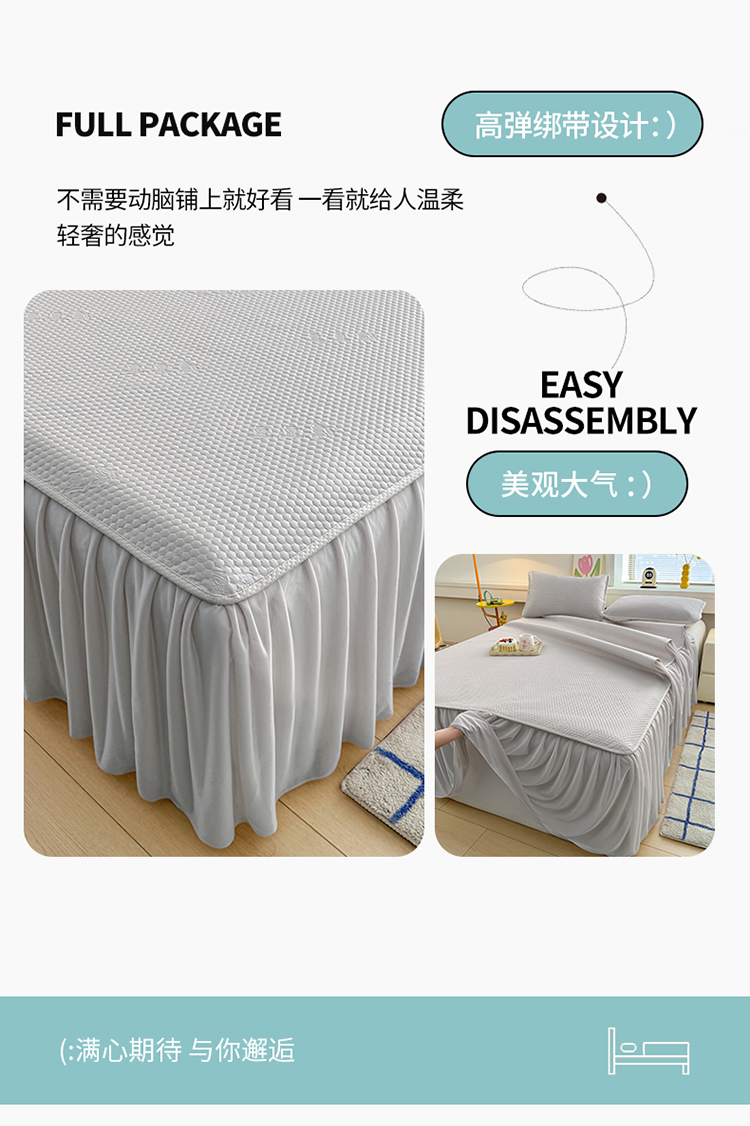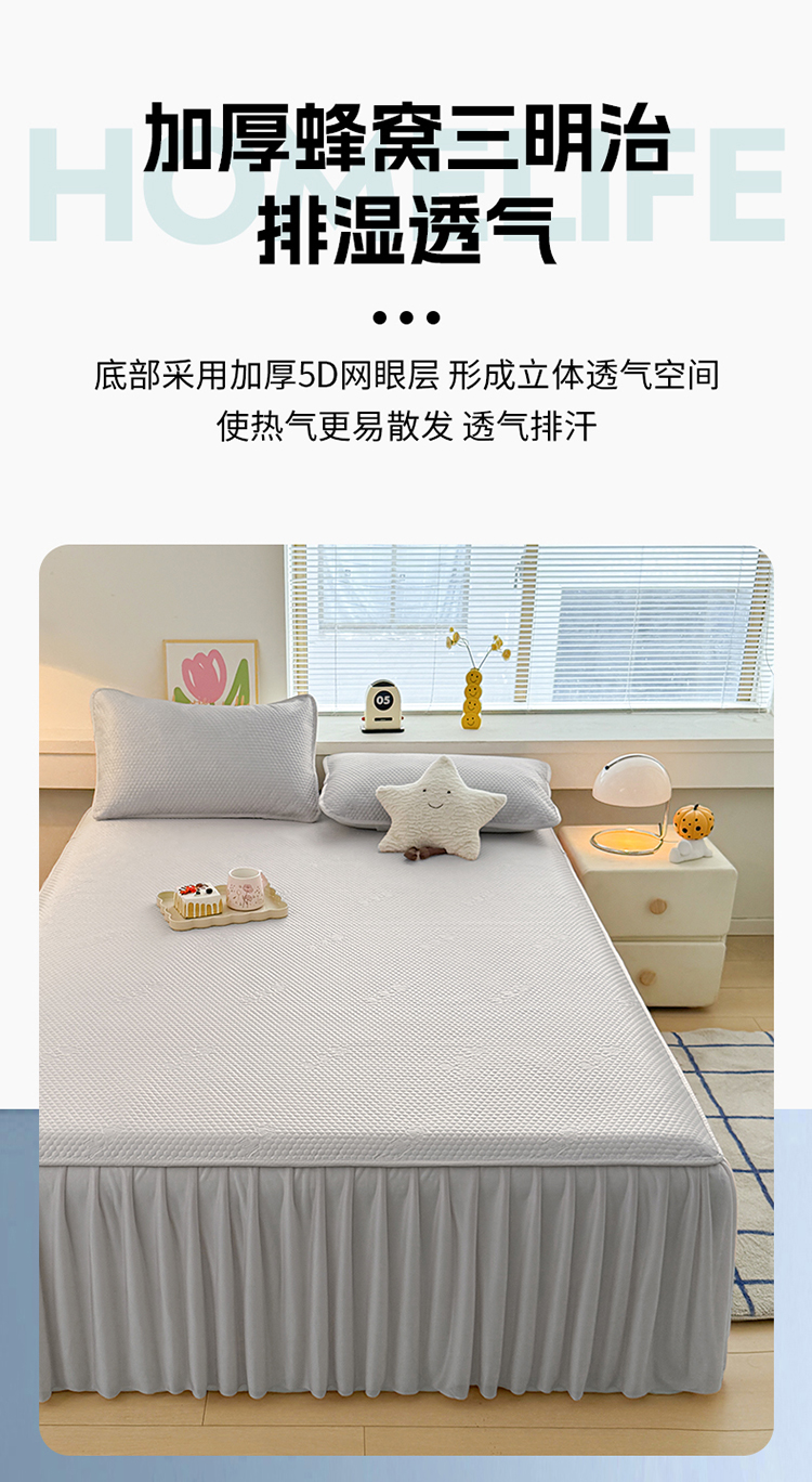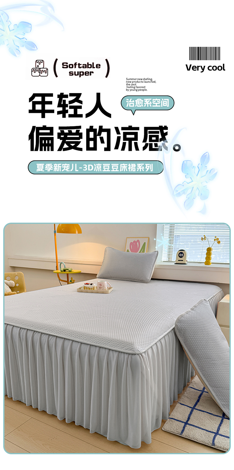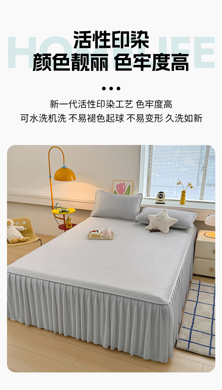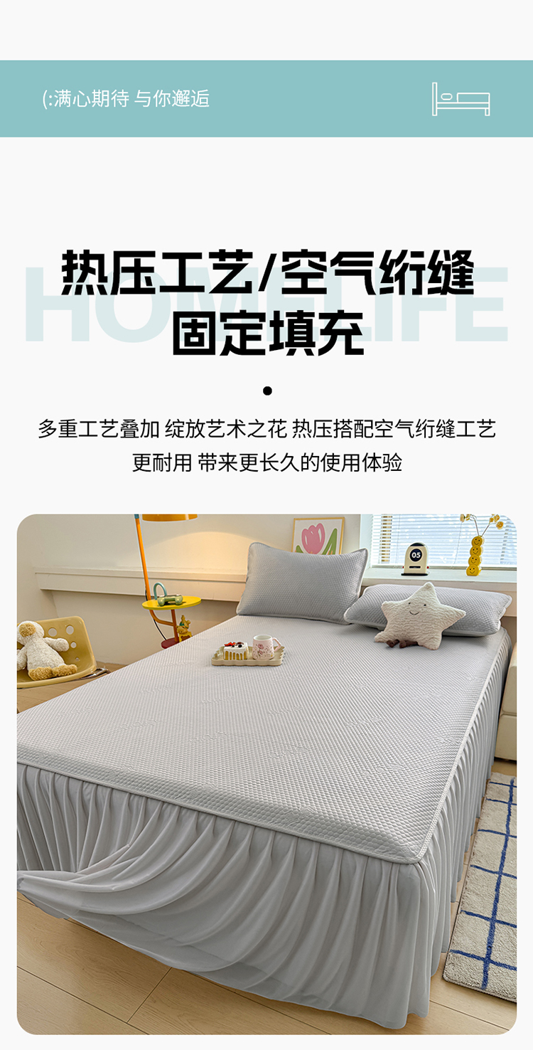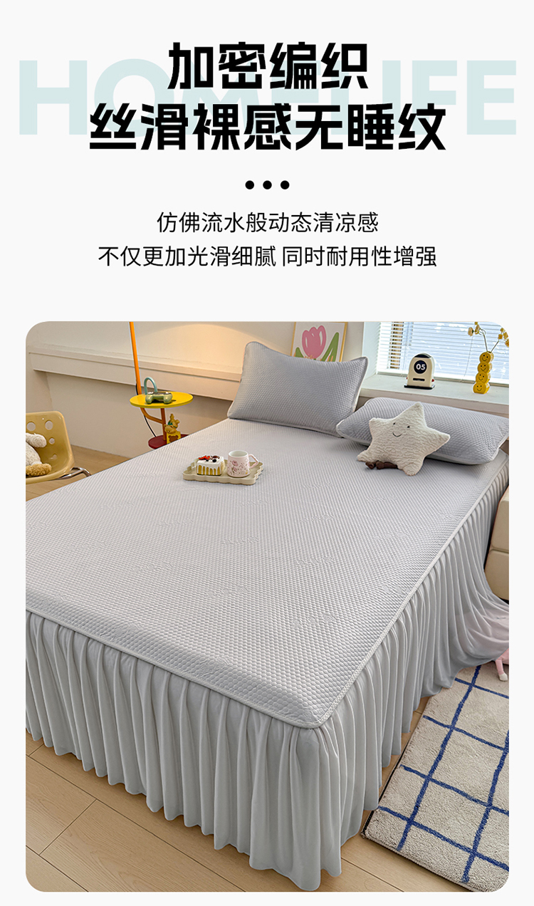 • 91家纺网 家纺一手货源 找家纺 莱轩席业  2025新款3D凉豆豆床裙款 高级灰