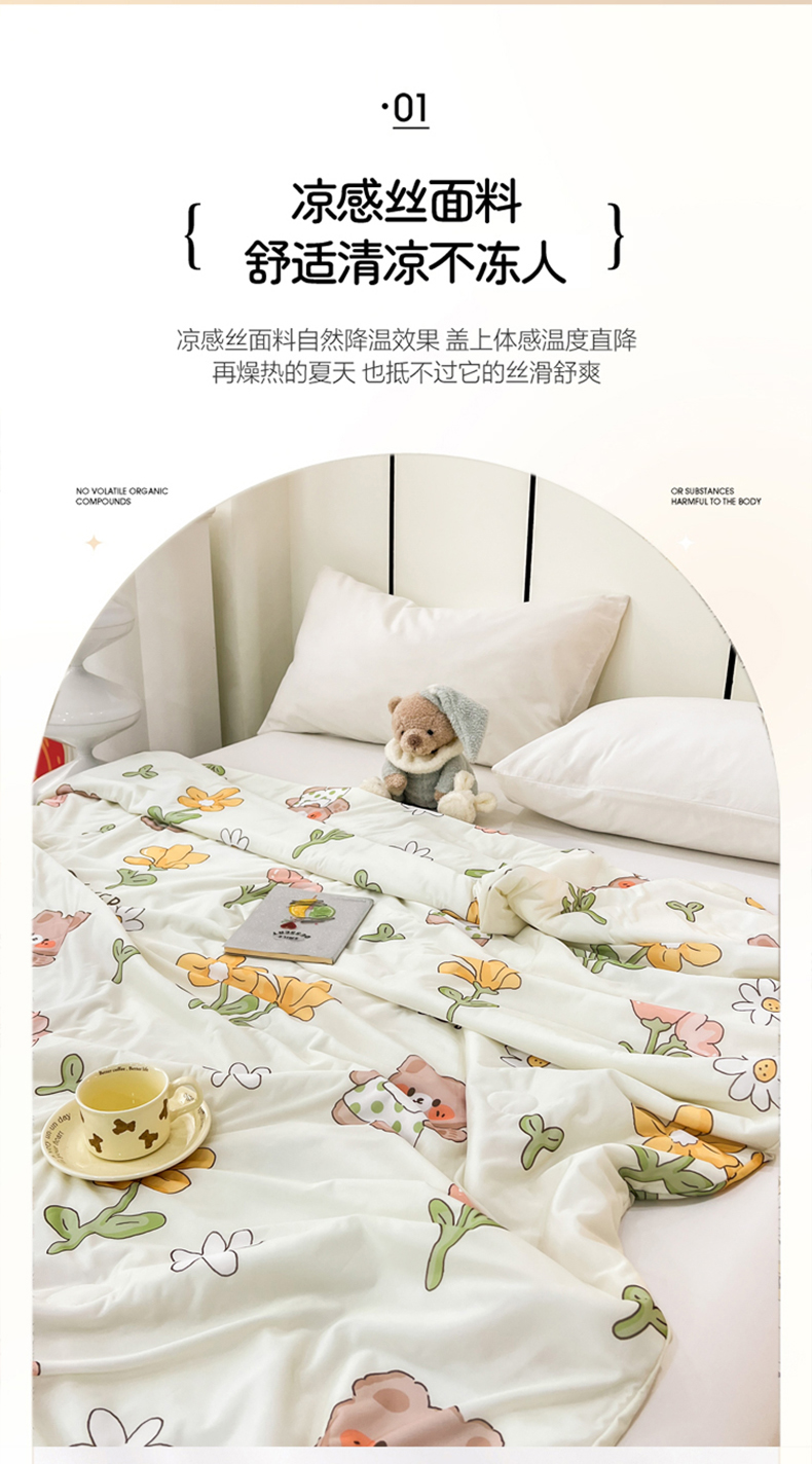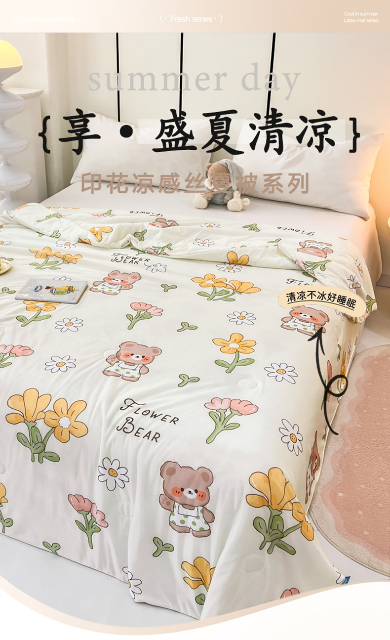 被子 > 夏被 > VIP被业 2025新款印花凉感丝冰淇淋云母日本凉感科技冰淇淋氨纶凉感天丝纯色夏被空调被 可爱熊 米