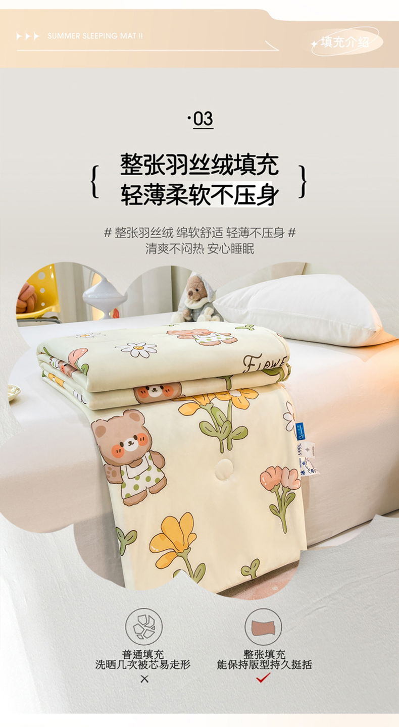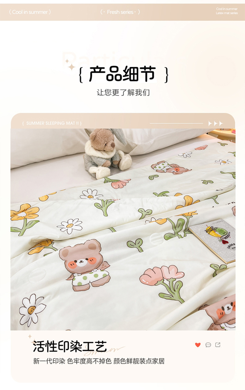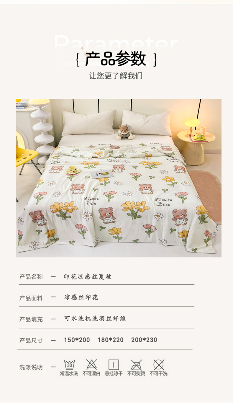 商品名称:VIP被业 2025新款印花凉感丝冰淇淋云母日本凉感科技冰淇淋氨纶凉感天丝纯色夏被空调被 可爱熊 米