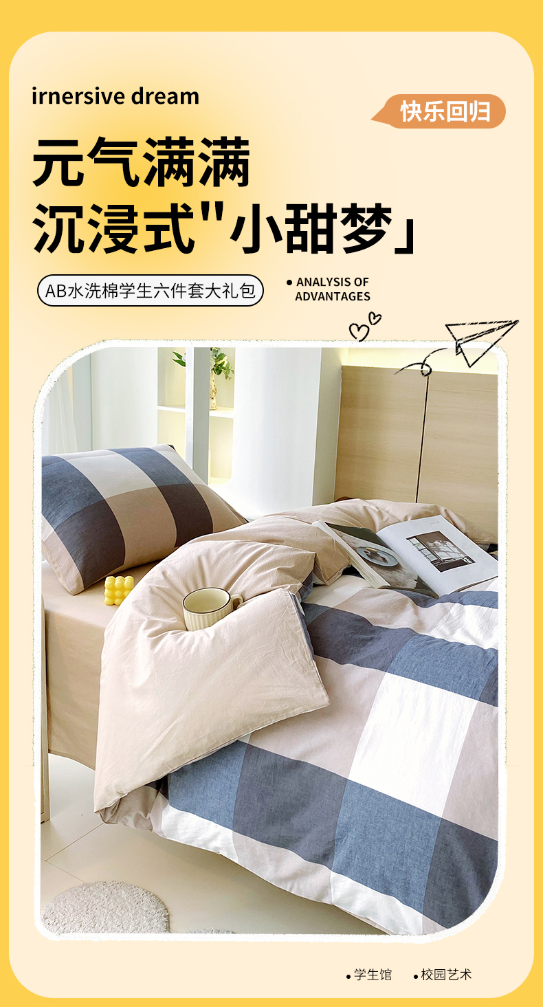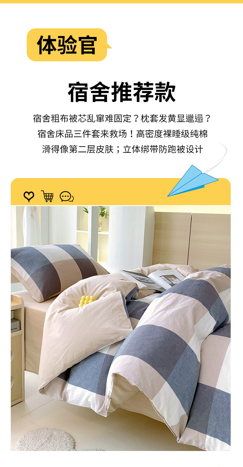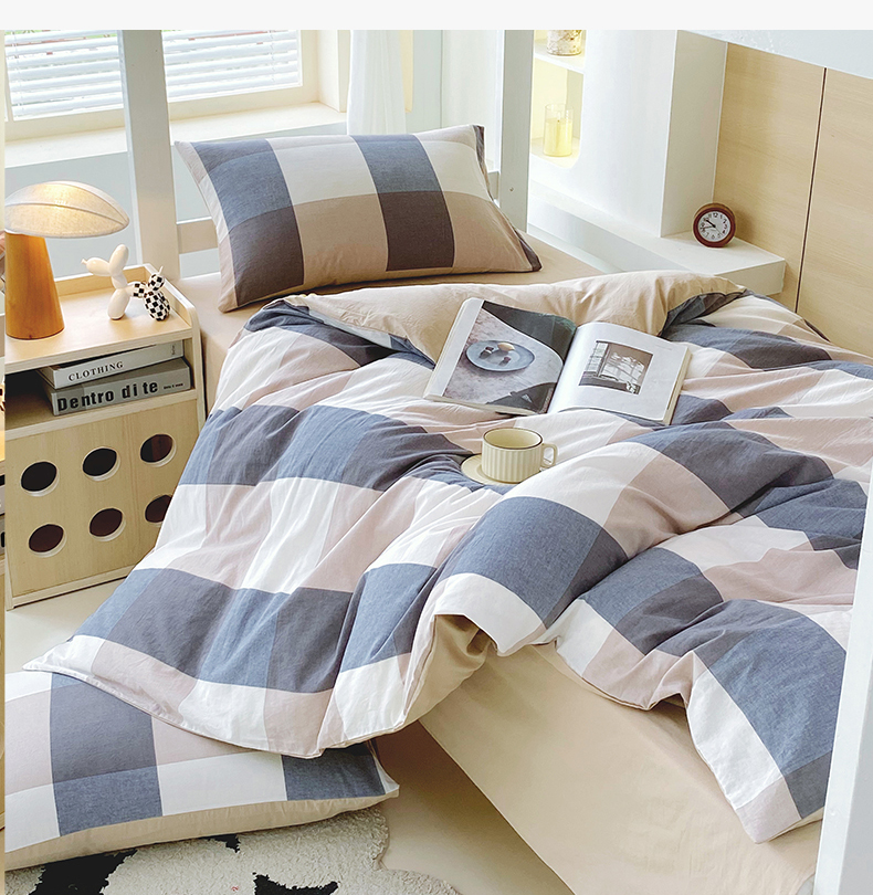 当前位置: 91家纺网 > 商品网购 > 床品套件 > 四件套 > 全棉普通四件套 > 春皖家纺 2025春夏新款AB版全棉纯棉色织水洗棉学生三件套六件套 素雅-蓝大格
