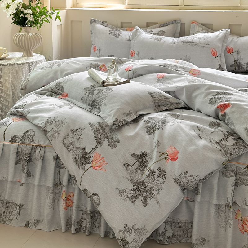 当前位置: 91家纺网 > 商品网购 > 床品套件 > 四件套 > 其它四件套 > 雨田家纺 2025新款柔软亲肤印花床裙四件套 千秋景色