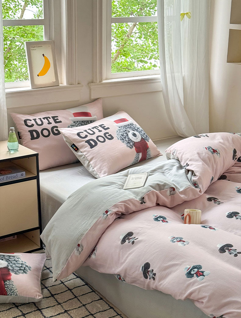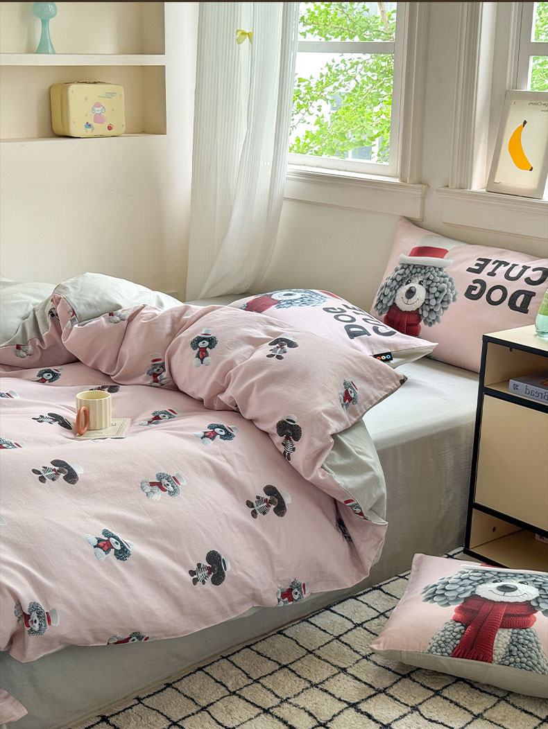 当前位置: 91家纺网 > 商品网购 > 床品套件 > 四件套 > 其它四件套 > RYB红黄兰 2025新款ins卡通设计师原创5D立体数码全棉纯棉双层纱四件套系列 粉色小奶狗