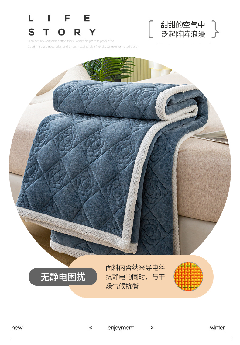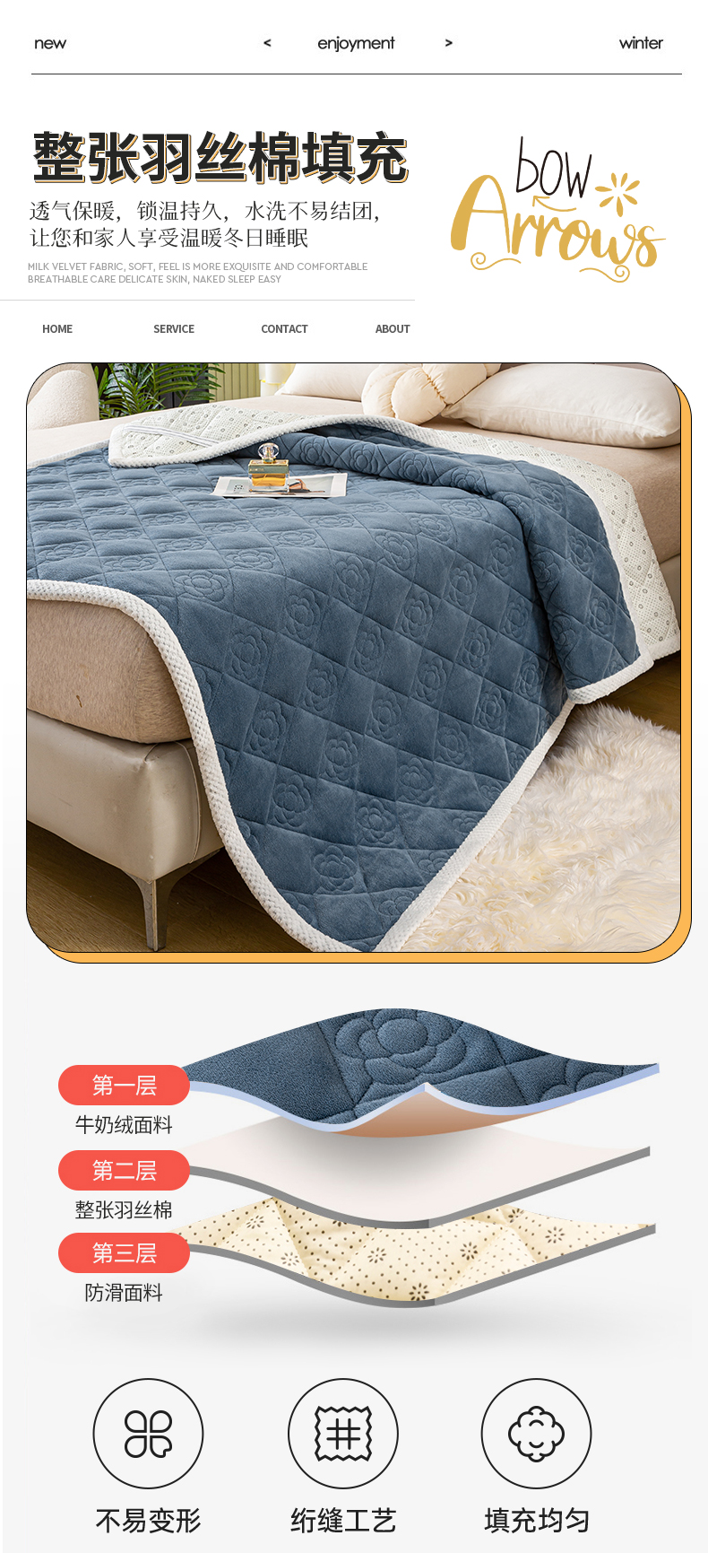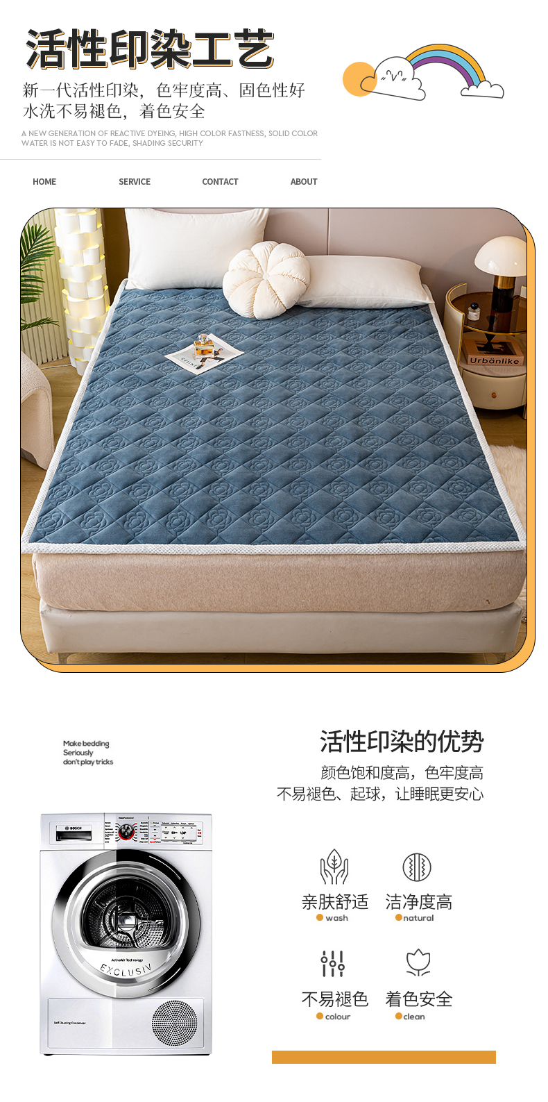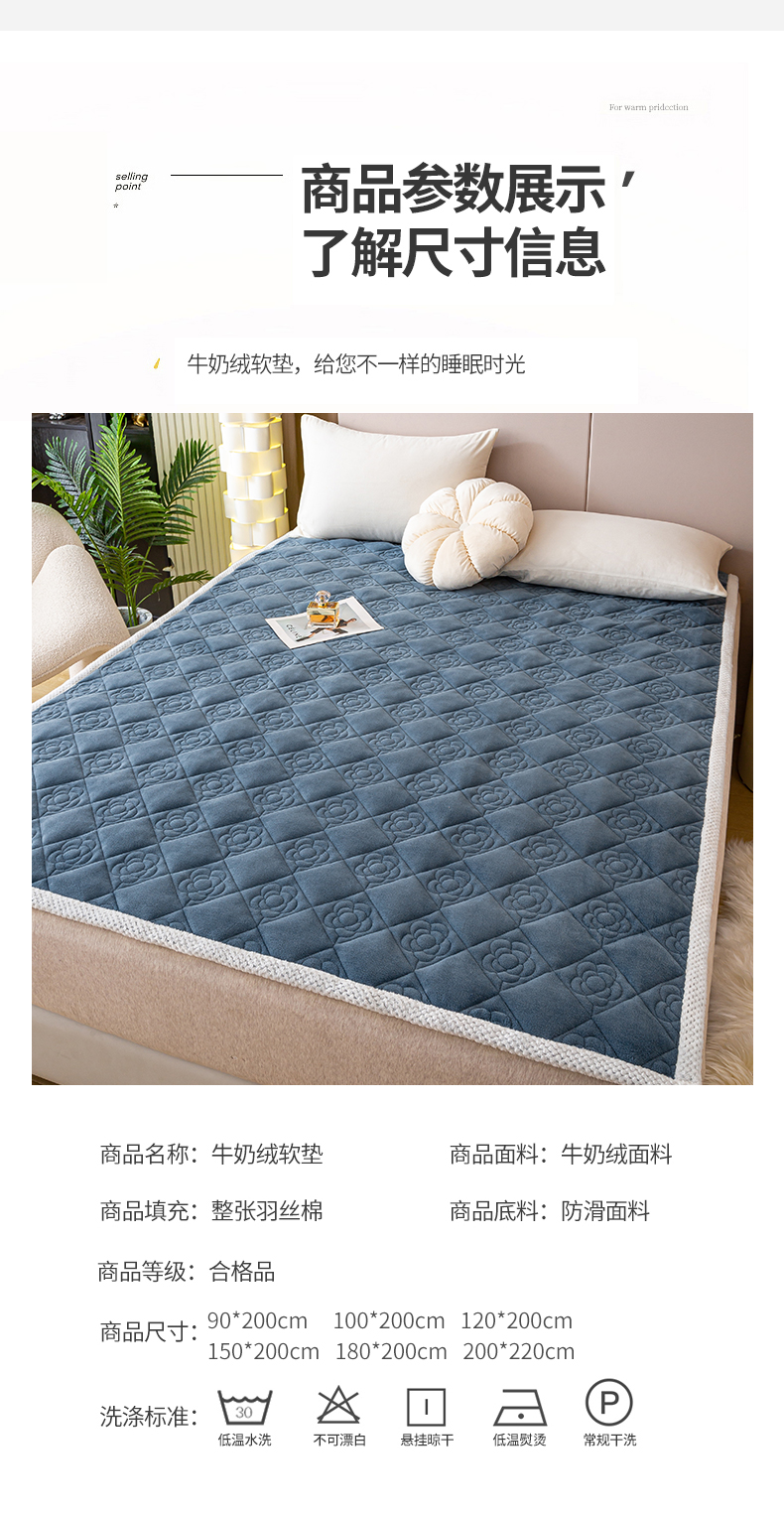 商品名称:正邦家纺 2025新款学生宿舍上下铺牛奶绒刺绣玫瑰花夹棉床垫床护垫床褥子 卡布里蓝