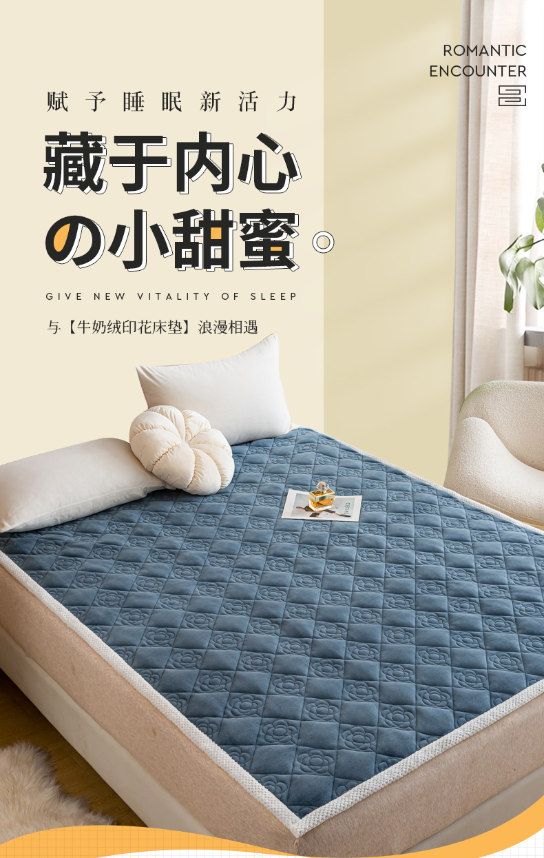 (总)正邦家纺 2025新款加厚全消光牛奶绒床垫夹棉床褥高克重5D雕花牛奶绒单人床上下铺床护垫,苹果绿,青花蓝,沙茶色,月蓝,柔雾灰,桃夭,组合