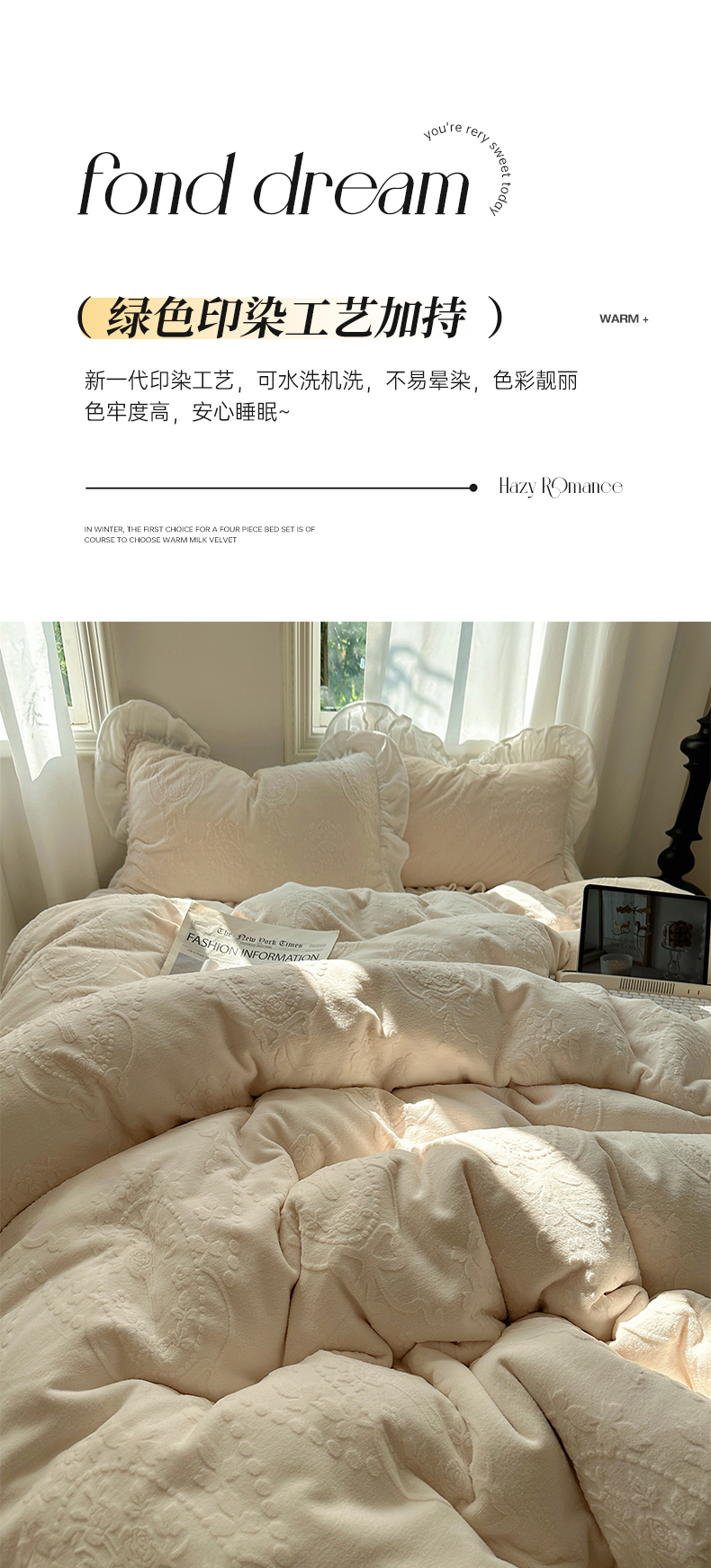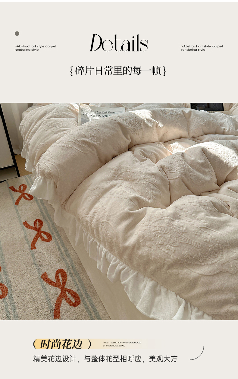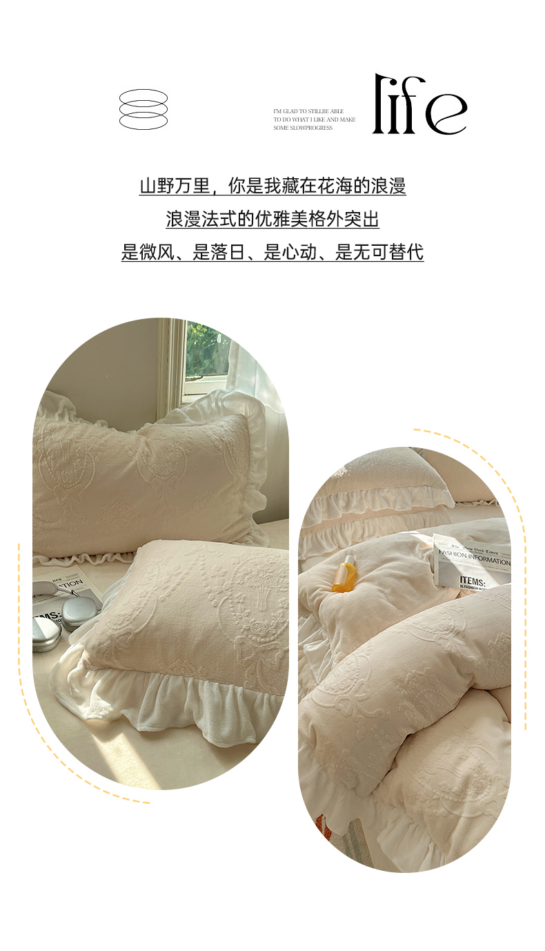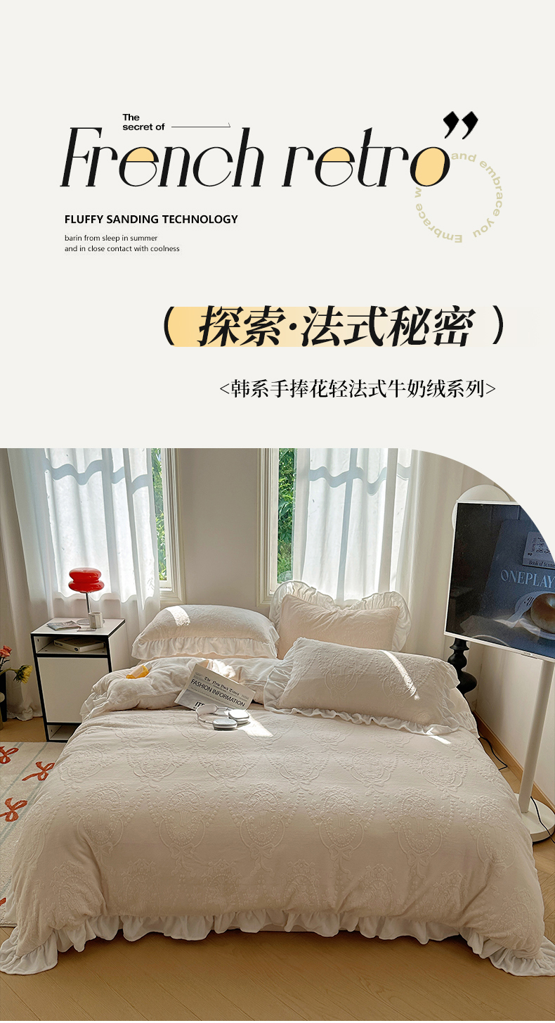 当前位置: 91家纺网 > 商品网购 > 床品套件 > 四件套 > 牛奶绒四件套 > 六巷胡同 2025新款韩系手捧花轻法式花边款牛奶绒四件套-风格一 手捧花-白