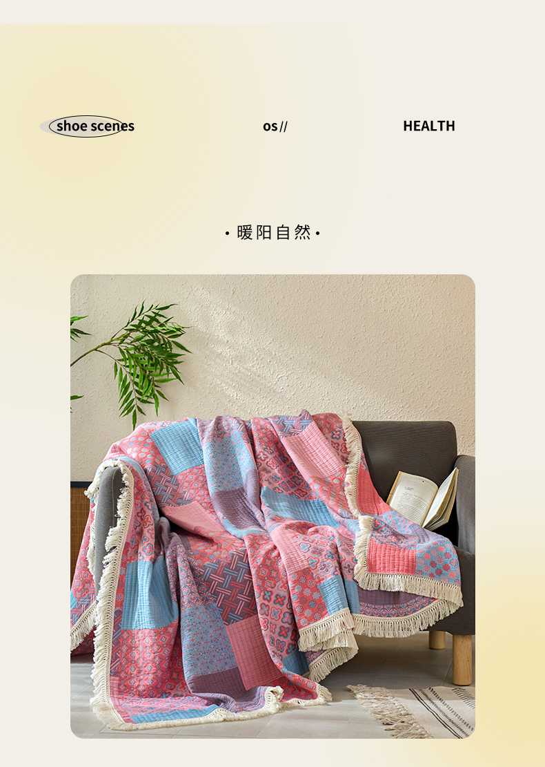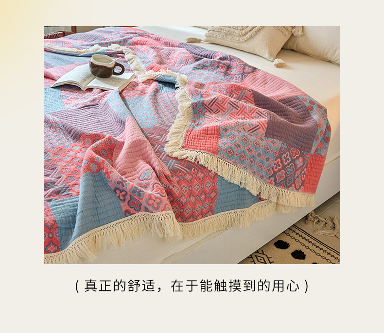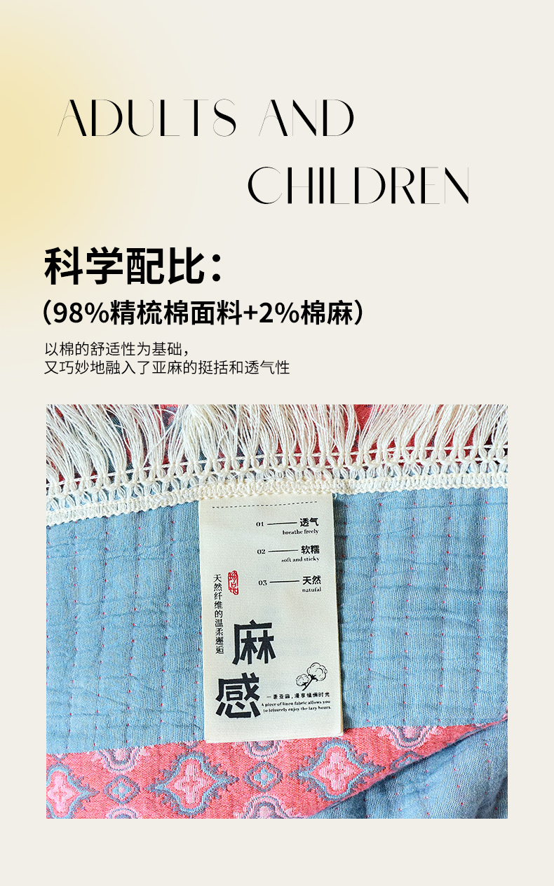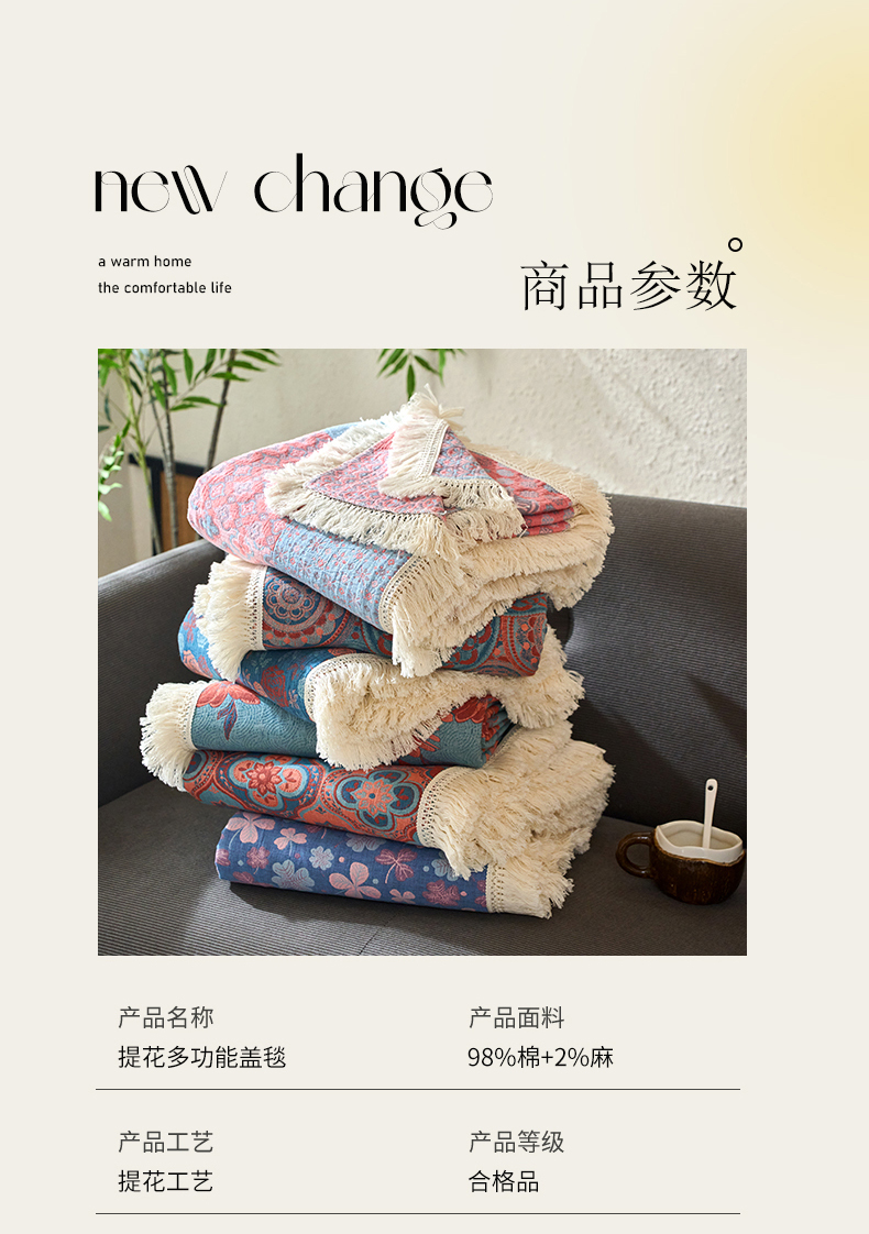 商品名称:春皖家纺 2025新款棉麻大提花三层纱多功能盖毯毯子 故里