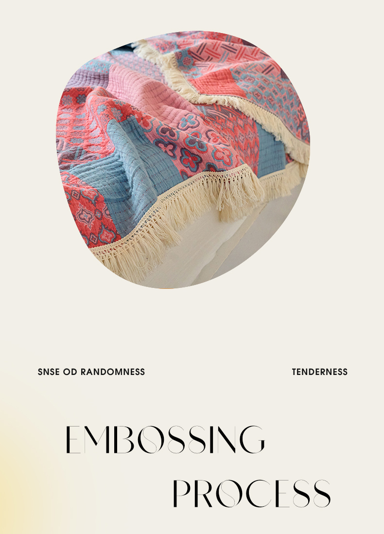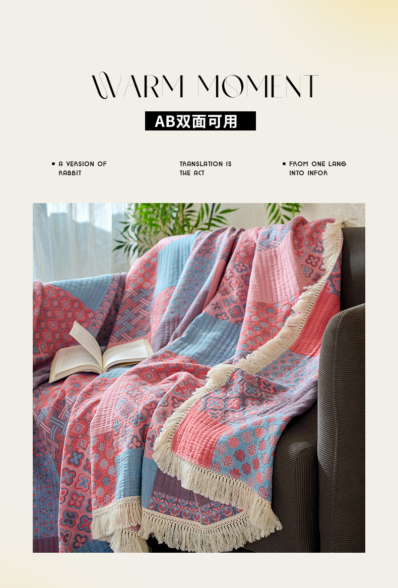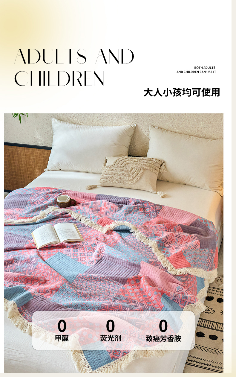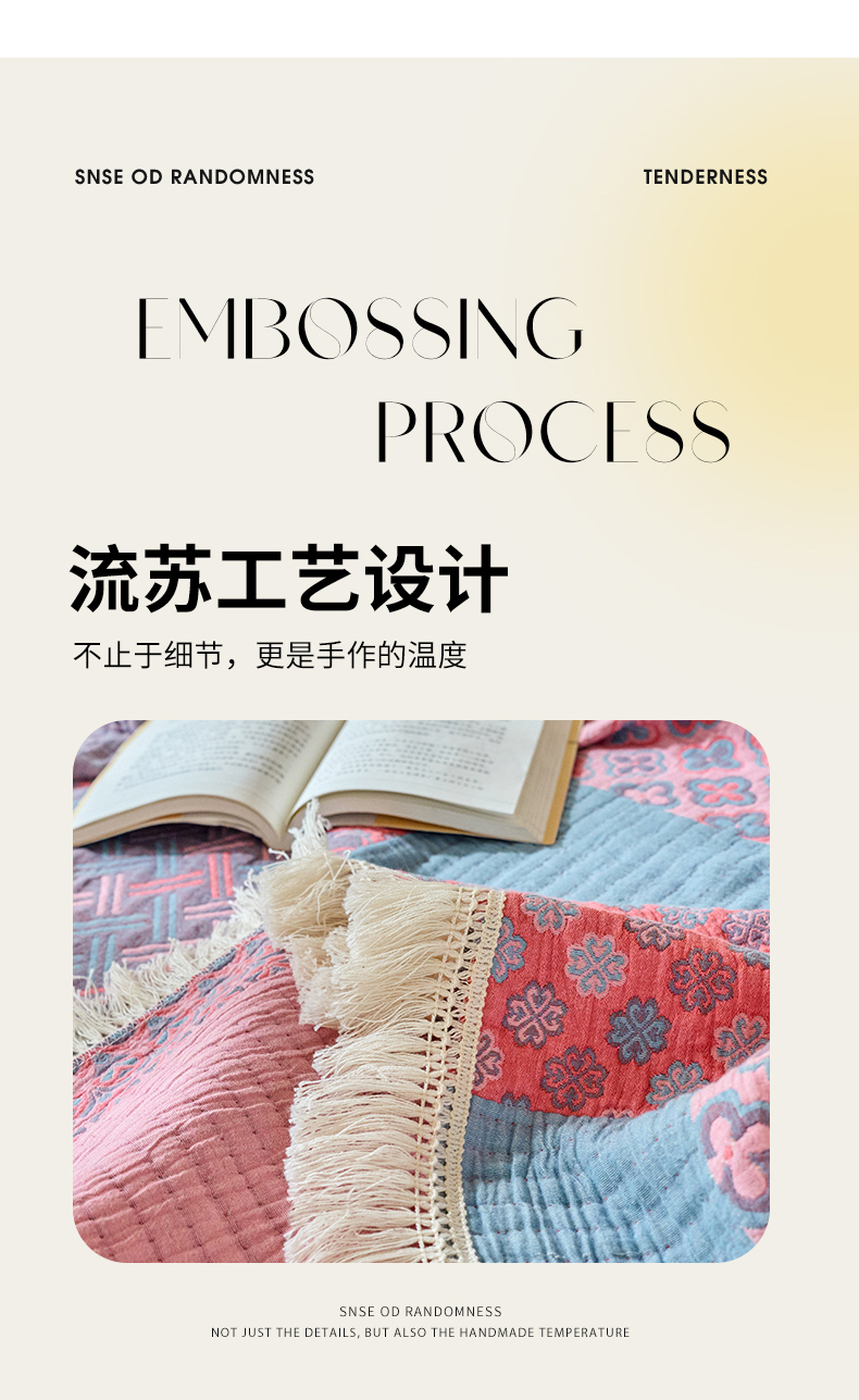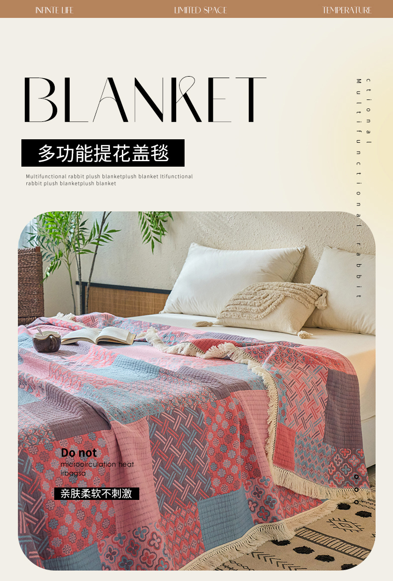 春皖家纺 2025新款棉麻大提花三层纱多功能盖毯毯子 故里