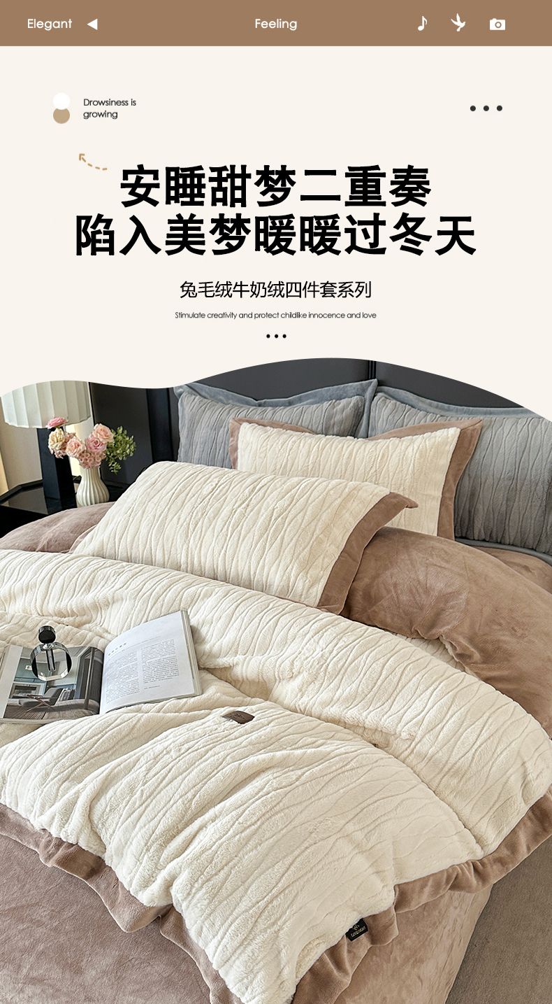 (总)2025新款兔毛绒牛奶绒四件套秋冬加厚十二斤床单床笠款被套床上用品