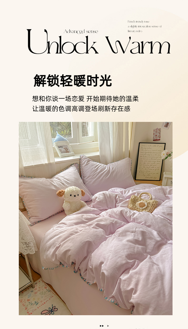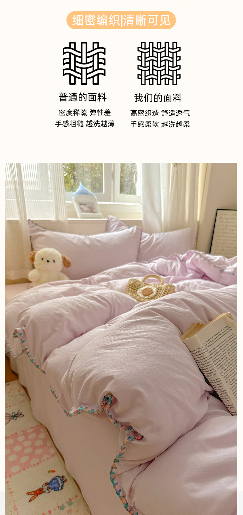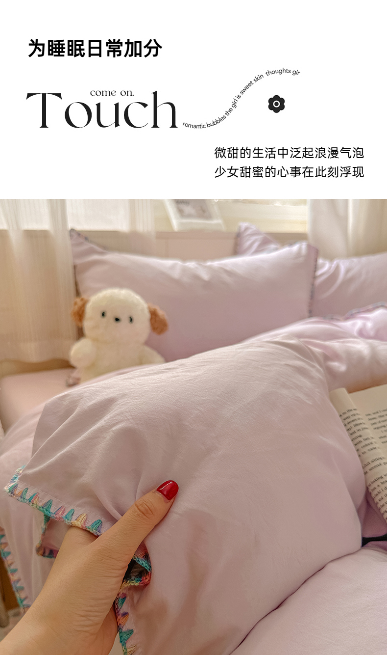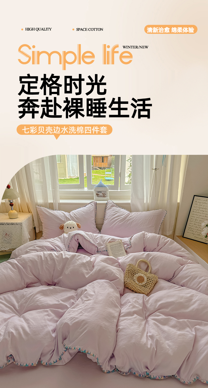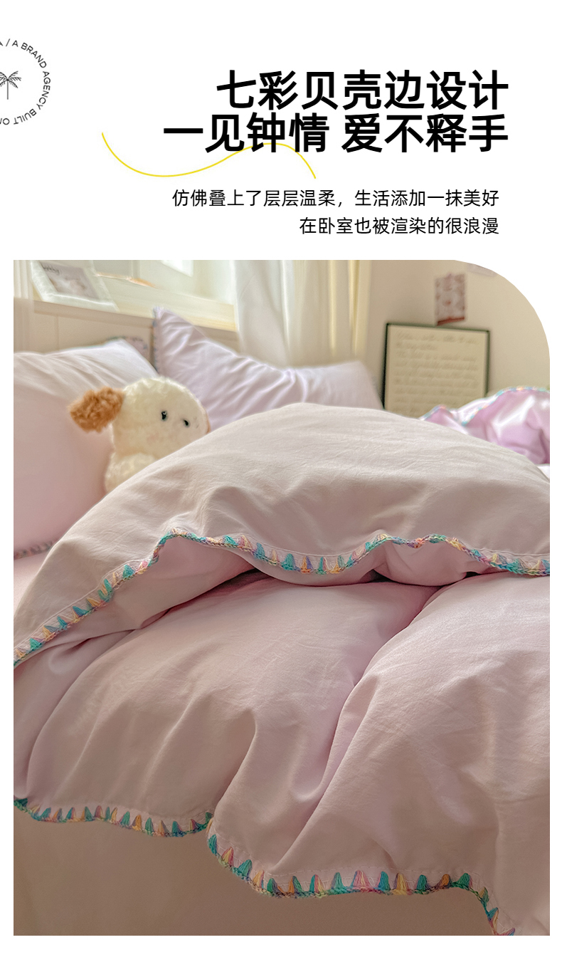 当前位置: 91家纺网 > 商品网购 > 床品套件 > 四件套 > 水洗棉四件套 > 冕悠家纺 2025新款A类七彩贝壳边水洗棉四件套 七彩-暮山紫
