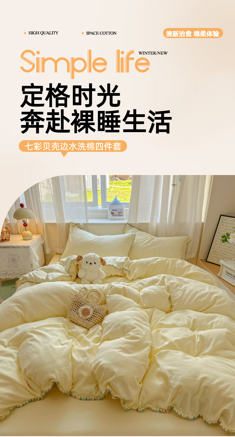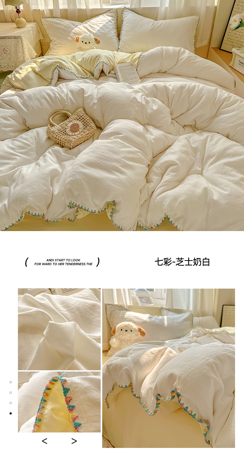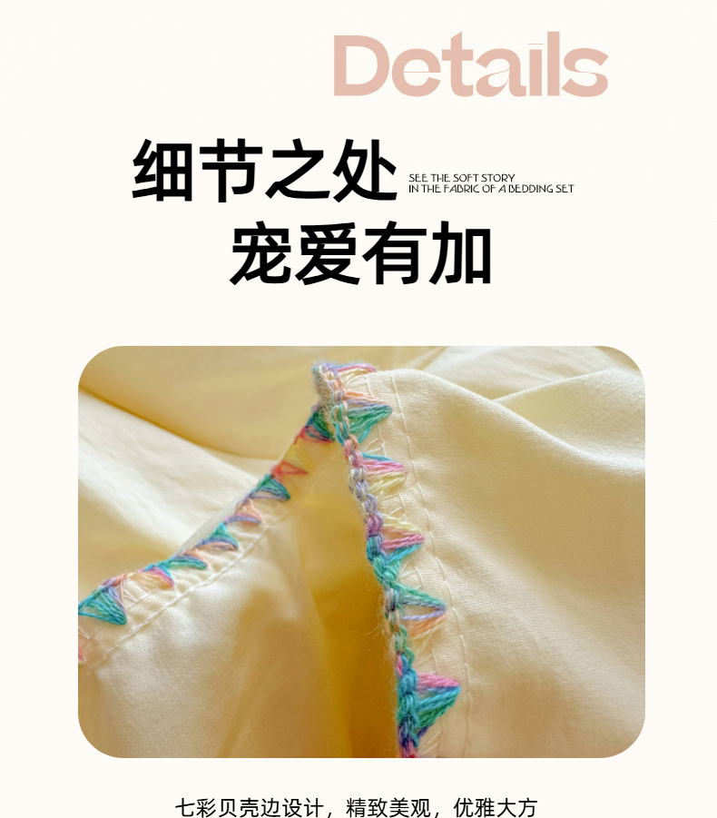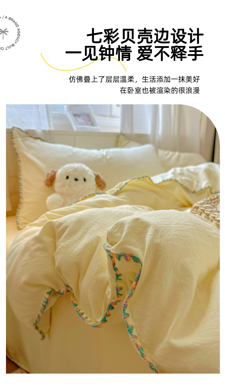 当前位置: 91家纺网 > 商品网购 > 床品套件 > 四件套 > 水洗棉四件套 > 冕悠家纺 2025新款A类七彩贝壳边水洗棉四件套 七彩-芝士