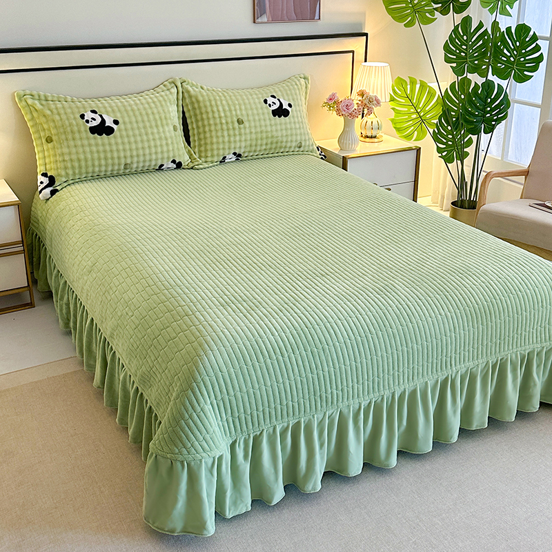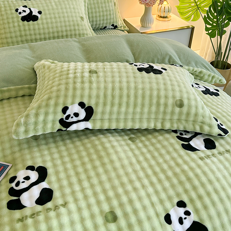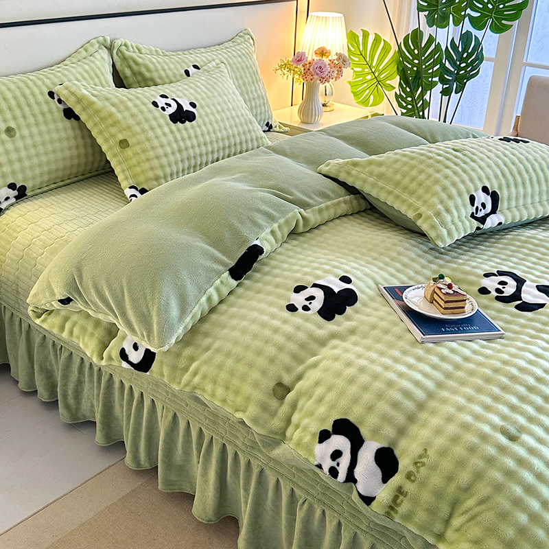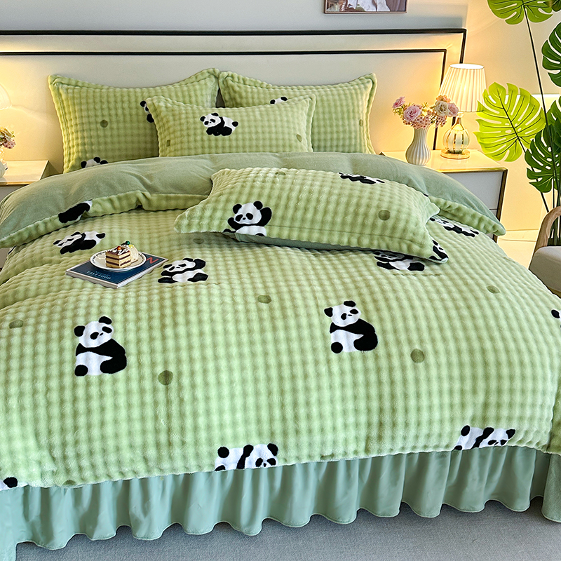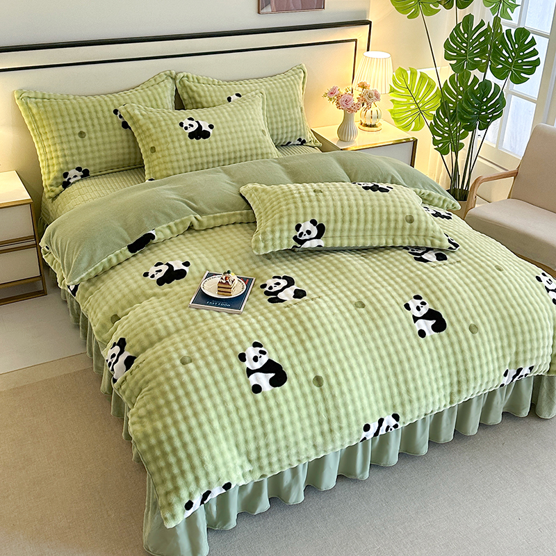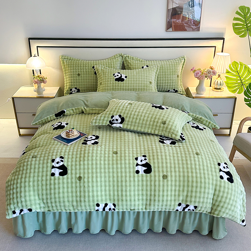 商品名称:富缦庭 2025新款泡泡牛奶绒床盖款四件套 熊猫绿