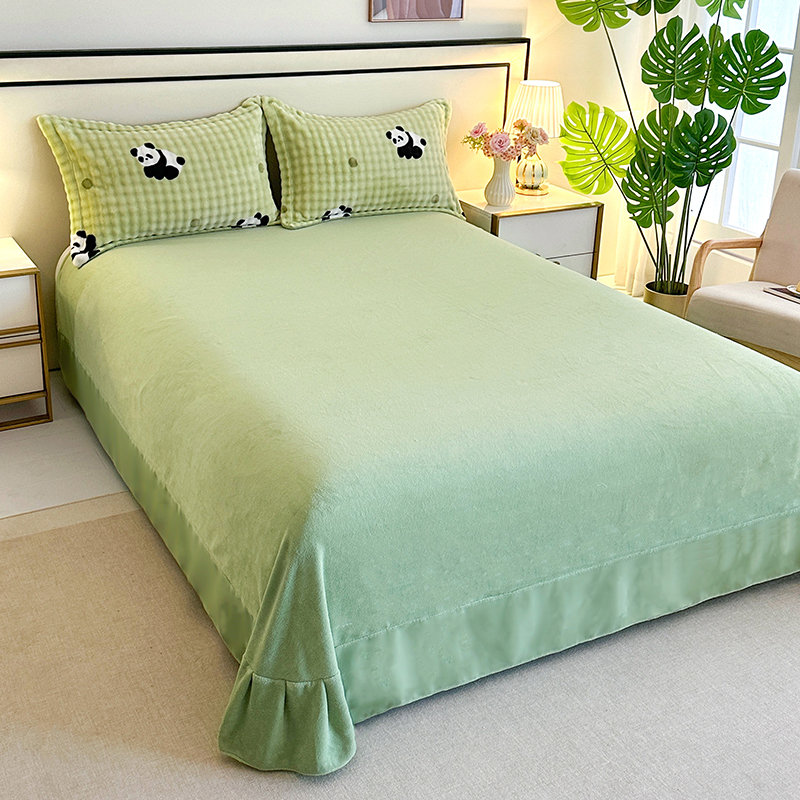 富缦庭 2025新款泡泡牛奶绒床盖款四件套 熊猫绿
