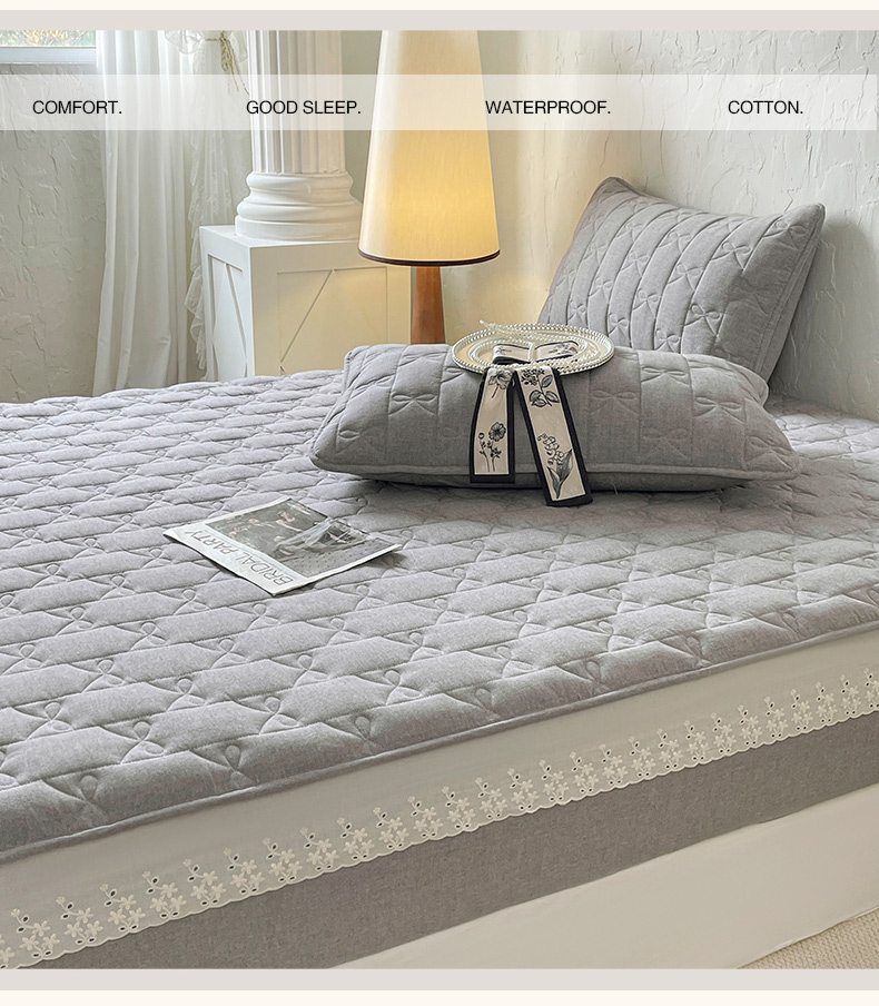 豪选家纺 2025新款纯棉花边夹棉棉花床笠 花边床笠-晨曦灰韵