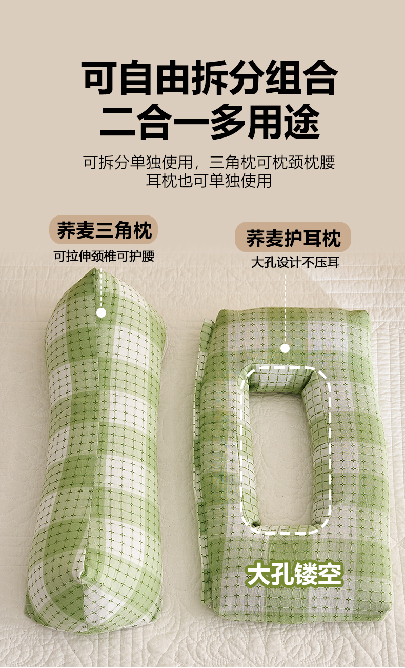 当前位置: 91家纺网 > 商品网购 > 枕头/枕芯/保健枕/颈椎枕 > 枕头枕芯 > 乐可 2025新款渐变方格护耳组合枕荞麦枕头枕芯 渐变护耳组合枕-组合图