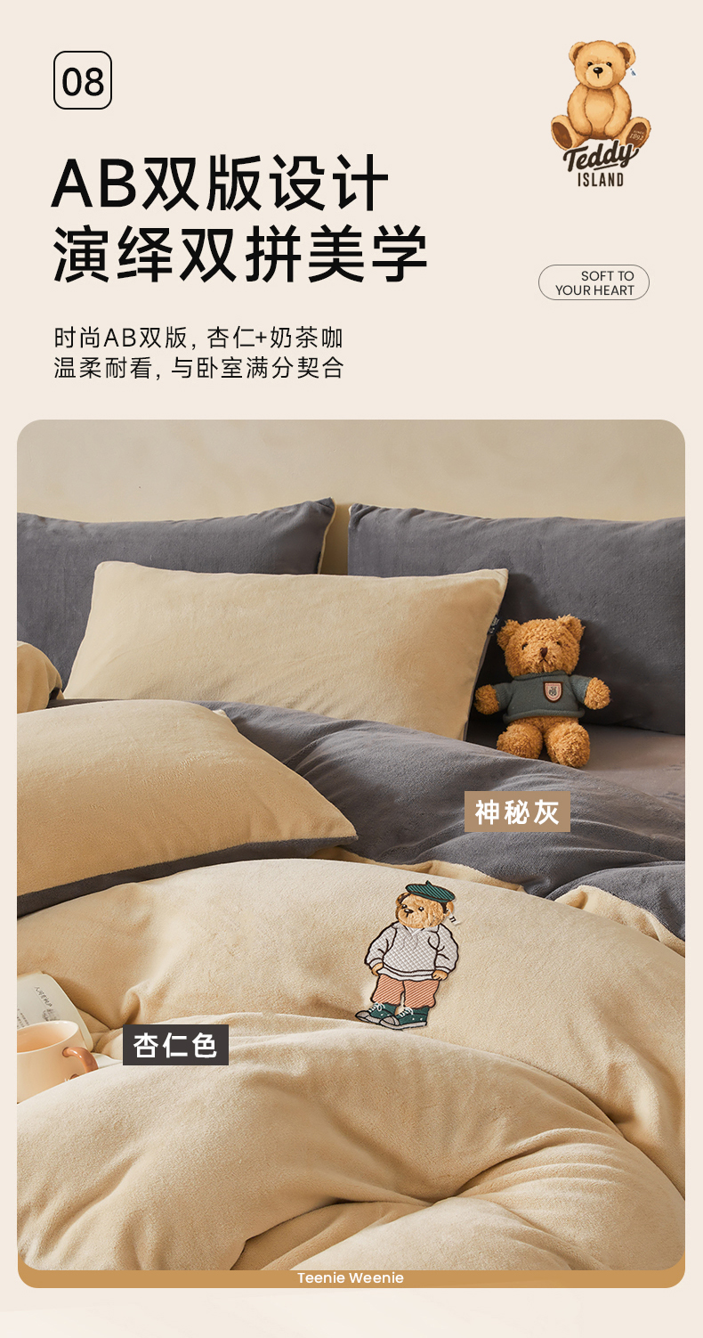 当前位置: 91家纺网 > 商品网购 > 床品套件 > 四件套 > 牛奶绒四件套 > 尚品本色 2025新款牛奶绒绣花四件套 杏仁色+神秘灰