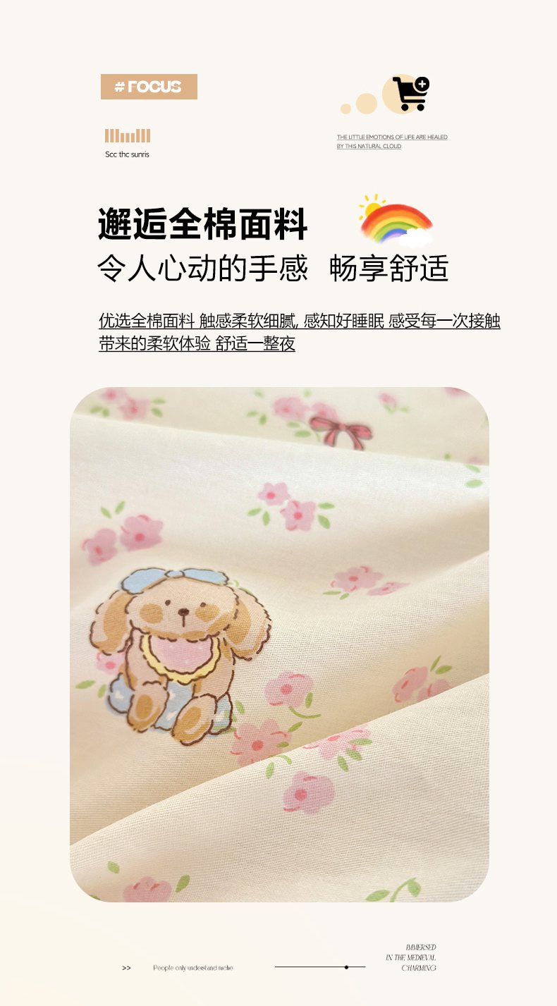 • 91家纺网 家纺一手货源 找家纺 (总)清雅福 2026春夏新款INS小清新40支全棉13372单被套第一批,棒棒糖女孩,春之约定,点点小狗,动物聚会,豆丁小熊,粉心狗,富贵狗,果子象,含羞草,假日小狗