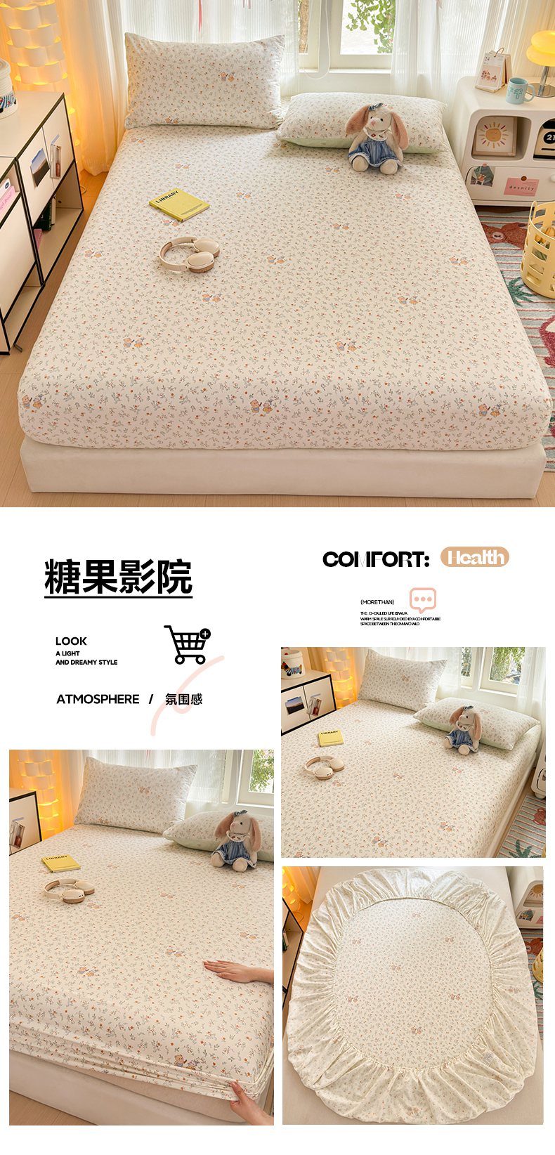 • 91家纺网 家纺一手货源 找家纺 清雅福 2025新款全棉柔软印花系列单床笠 奶酪幼儿园