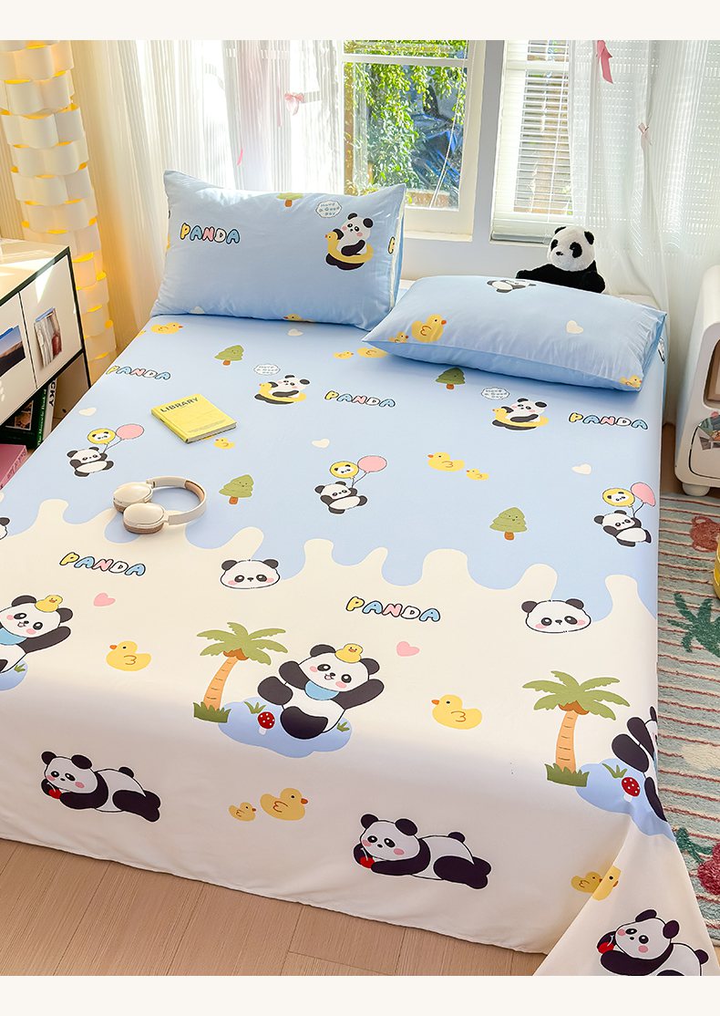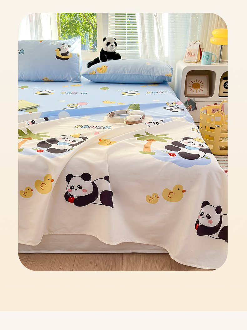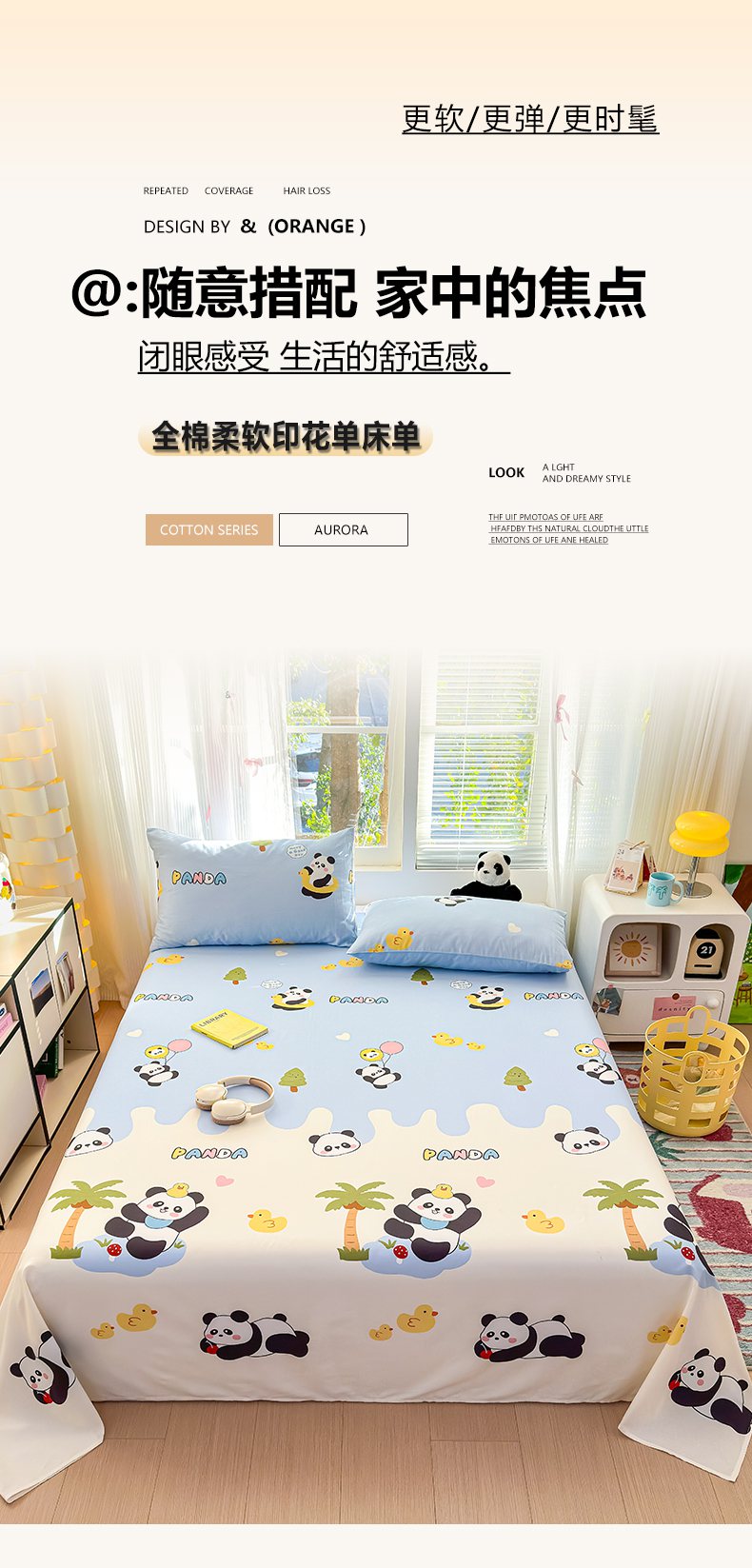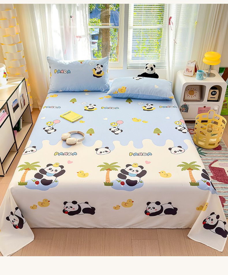 清雅福 2025新款全棉柔软印花系列单床单 熊猫鸭鸭乐-兰