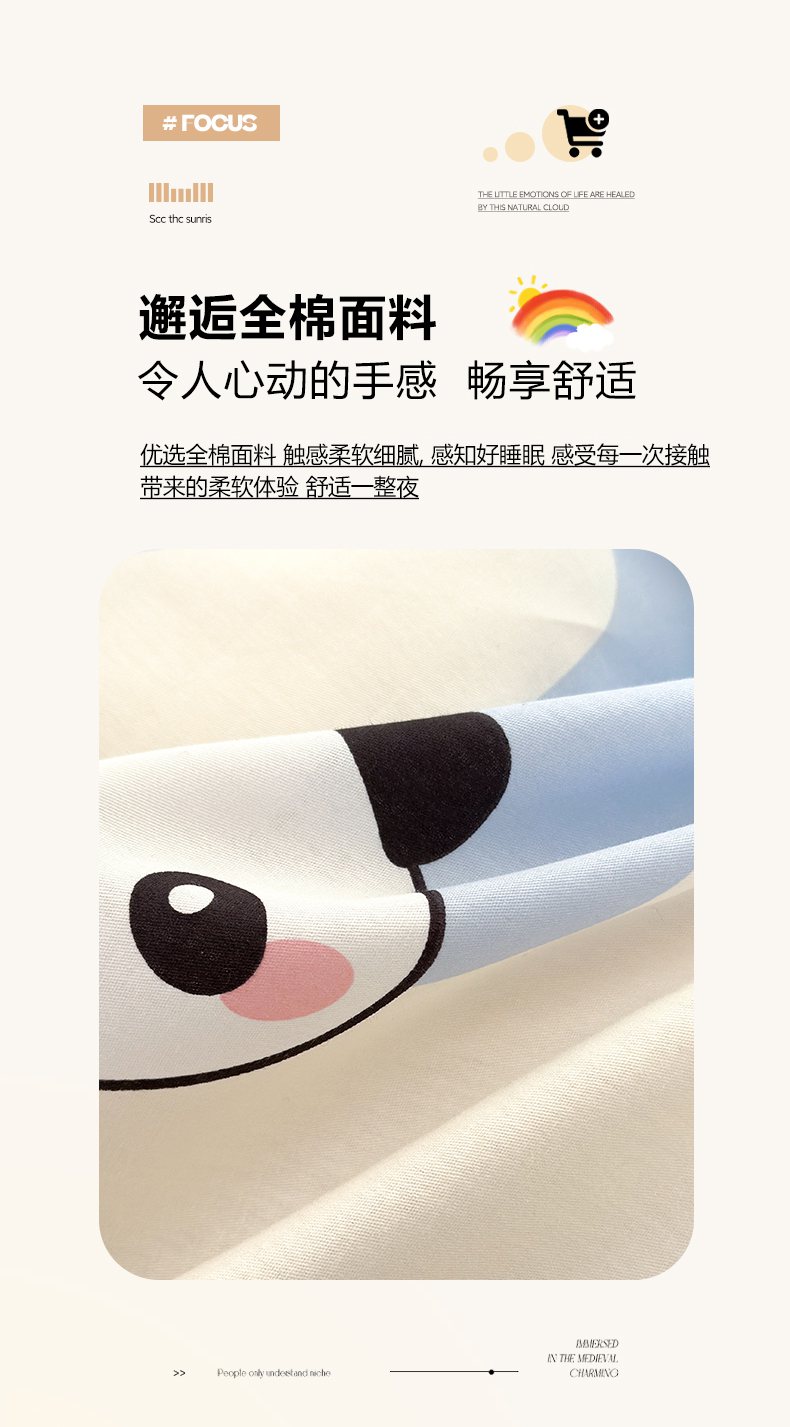 当前位置: 91家纺网 > 商品网购 > 床上用品 > 床单 > 清雅福 2025新款全棉柔软印花系列单床单 熊猫鸭鸭乐-兰