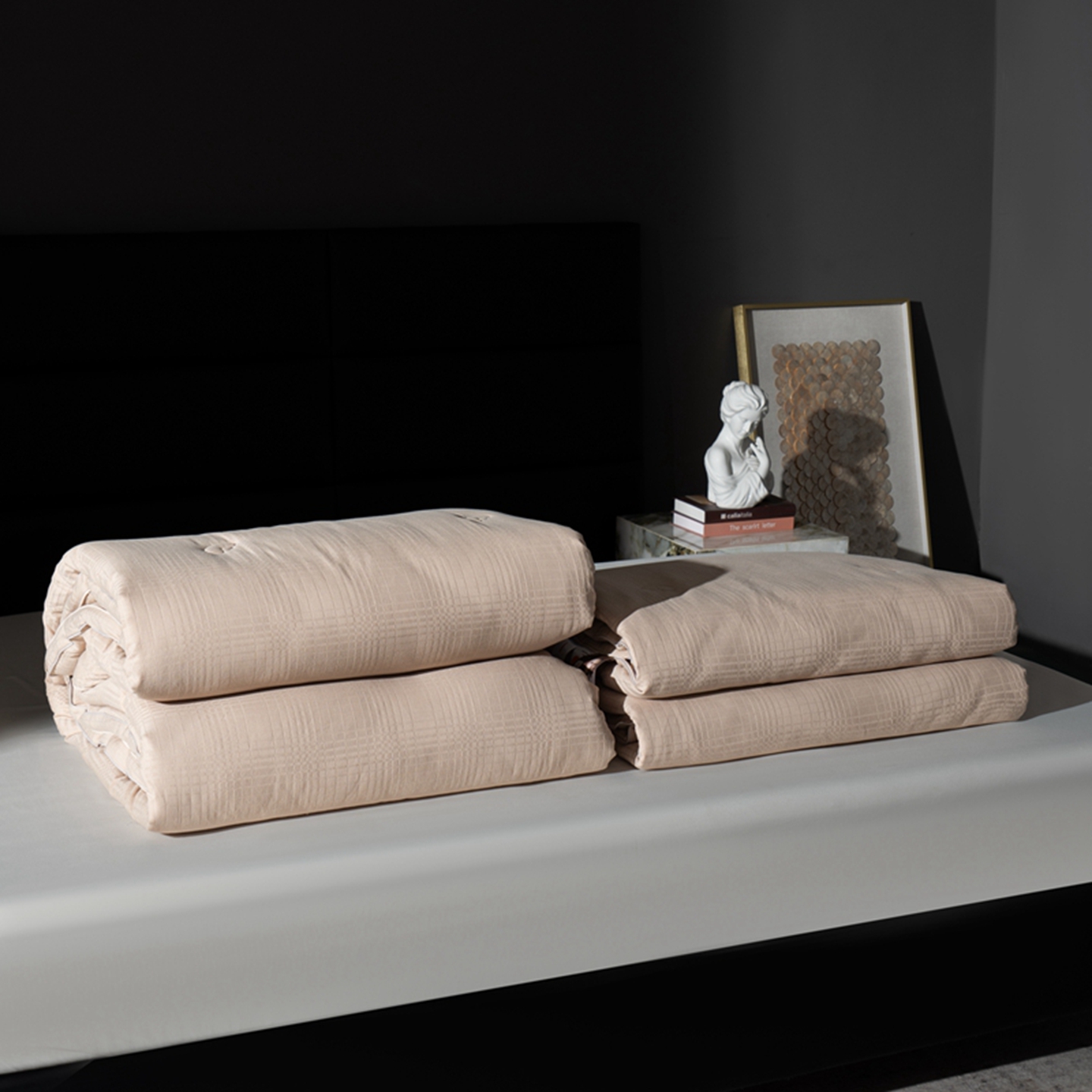 (总)双层纱家居 2025新款黑大格双层纱四件套,黑大格