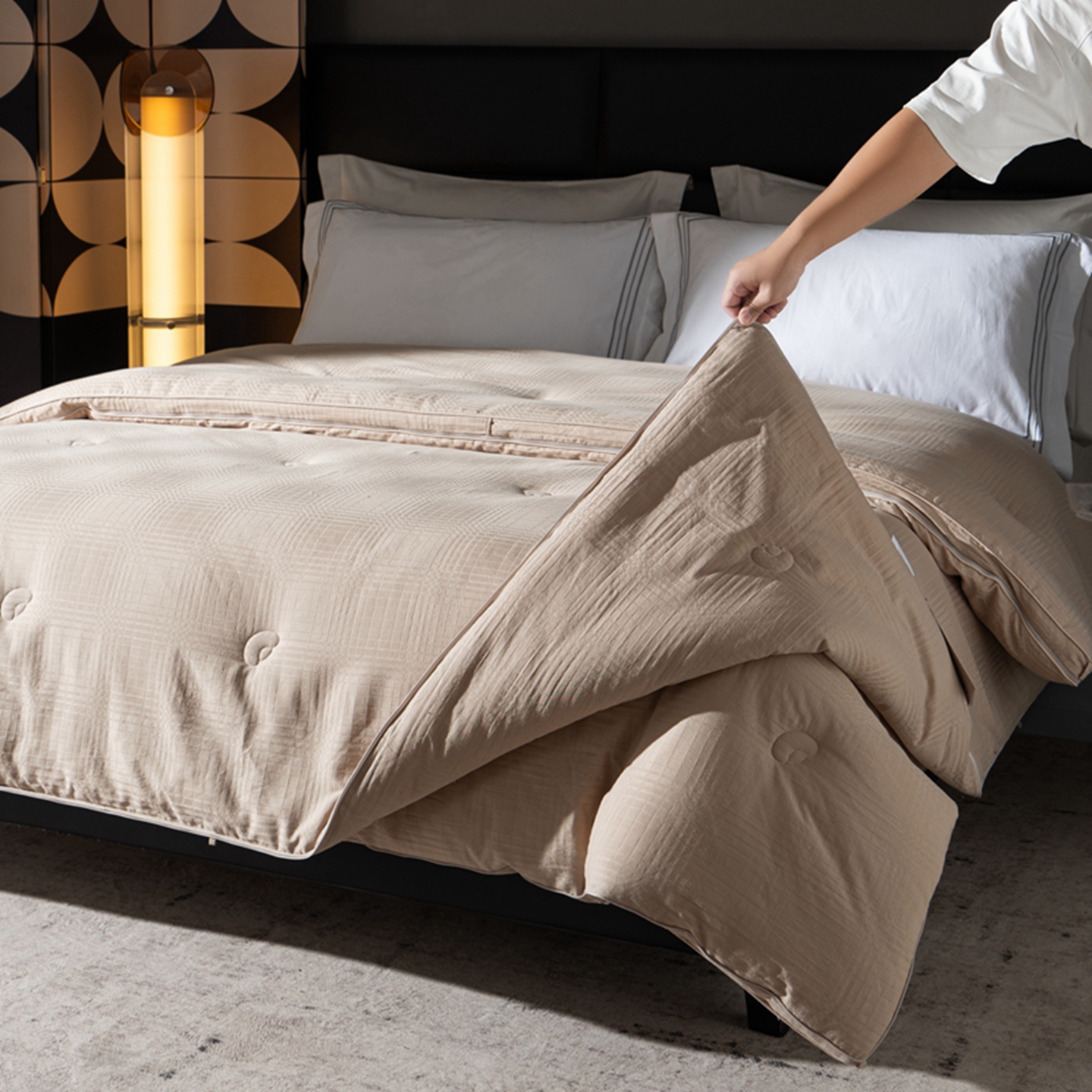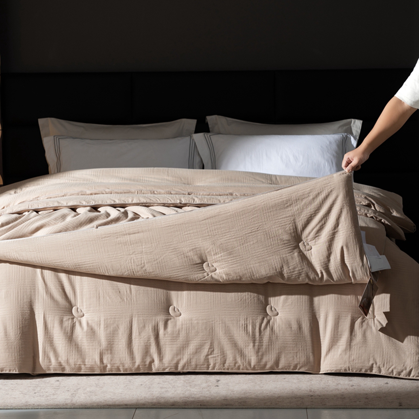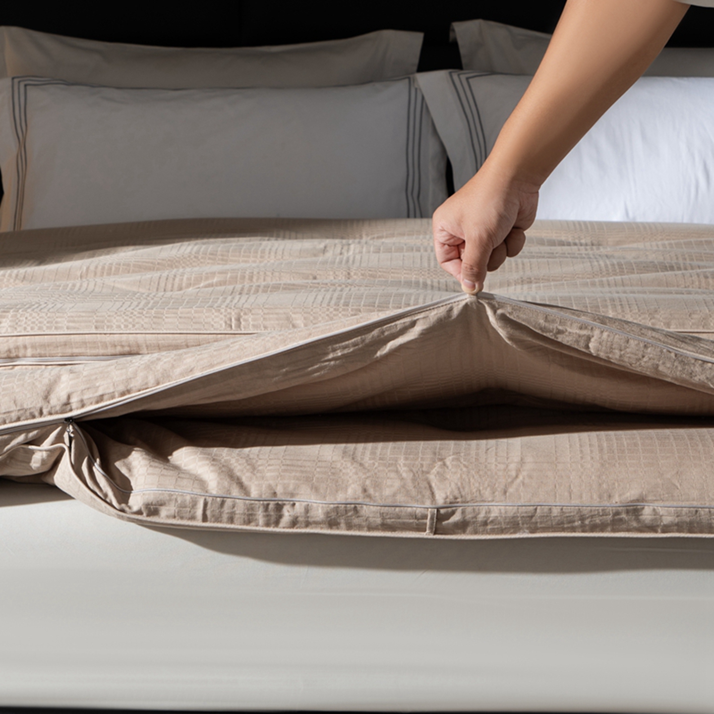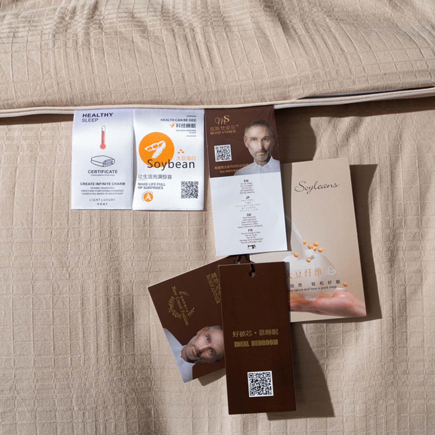 (总)双层纱家居 2024新款100支新疆精梳棉植物大豆蛋白被,卡其色,白色